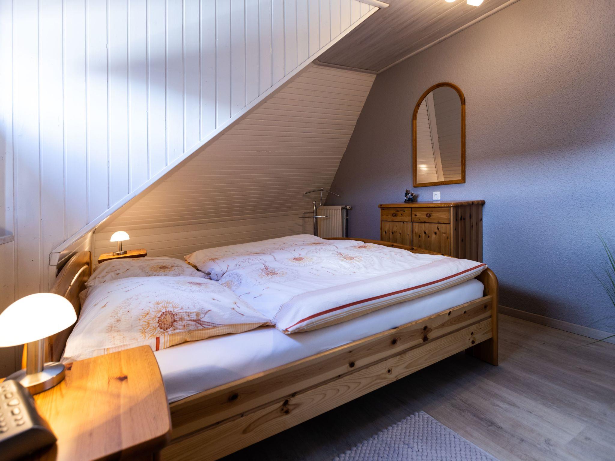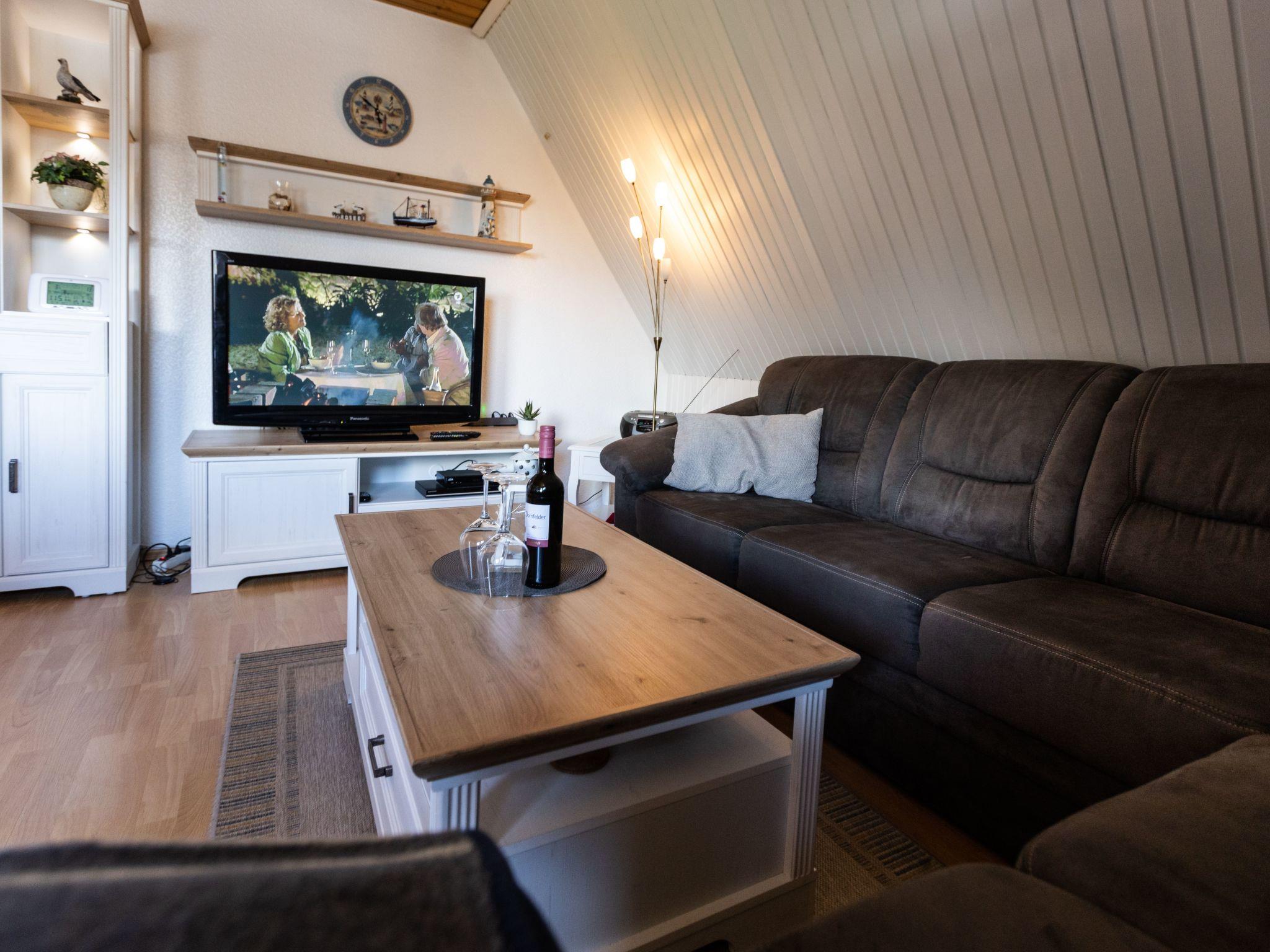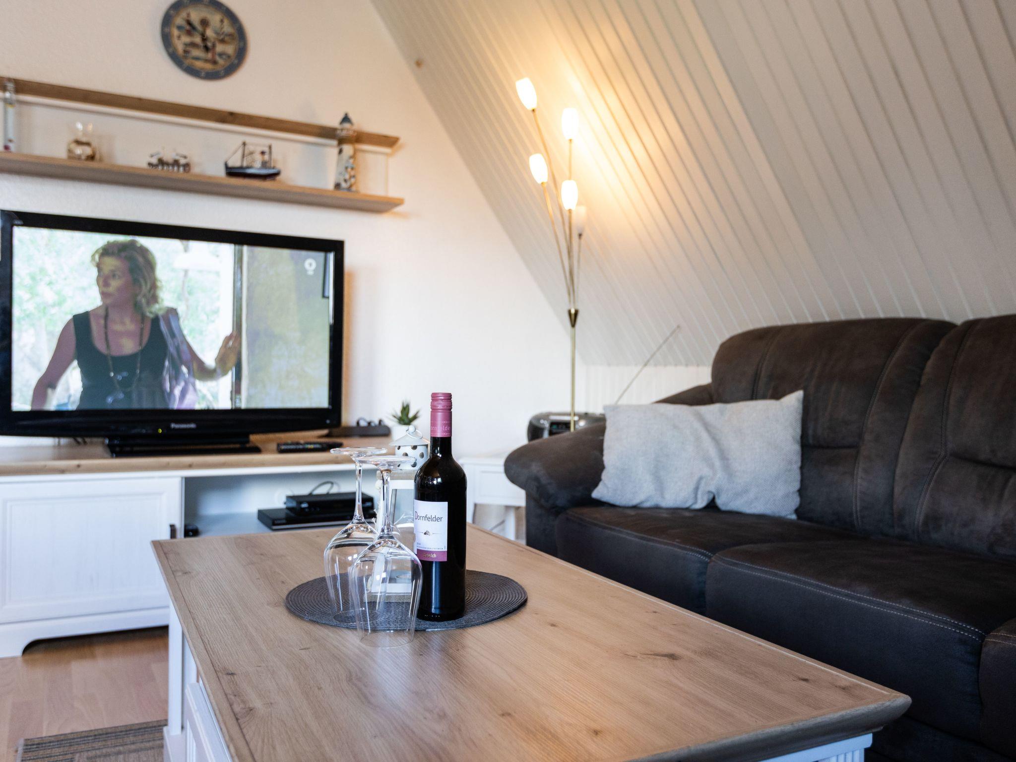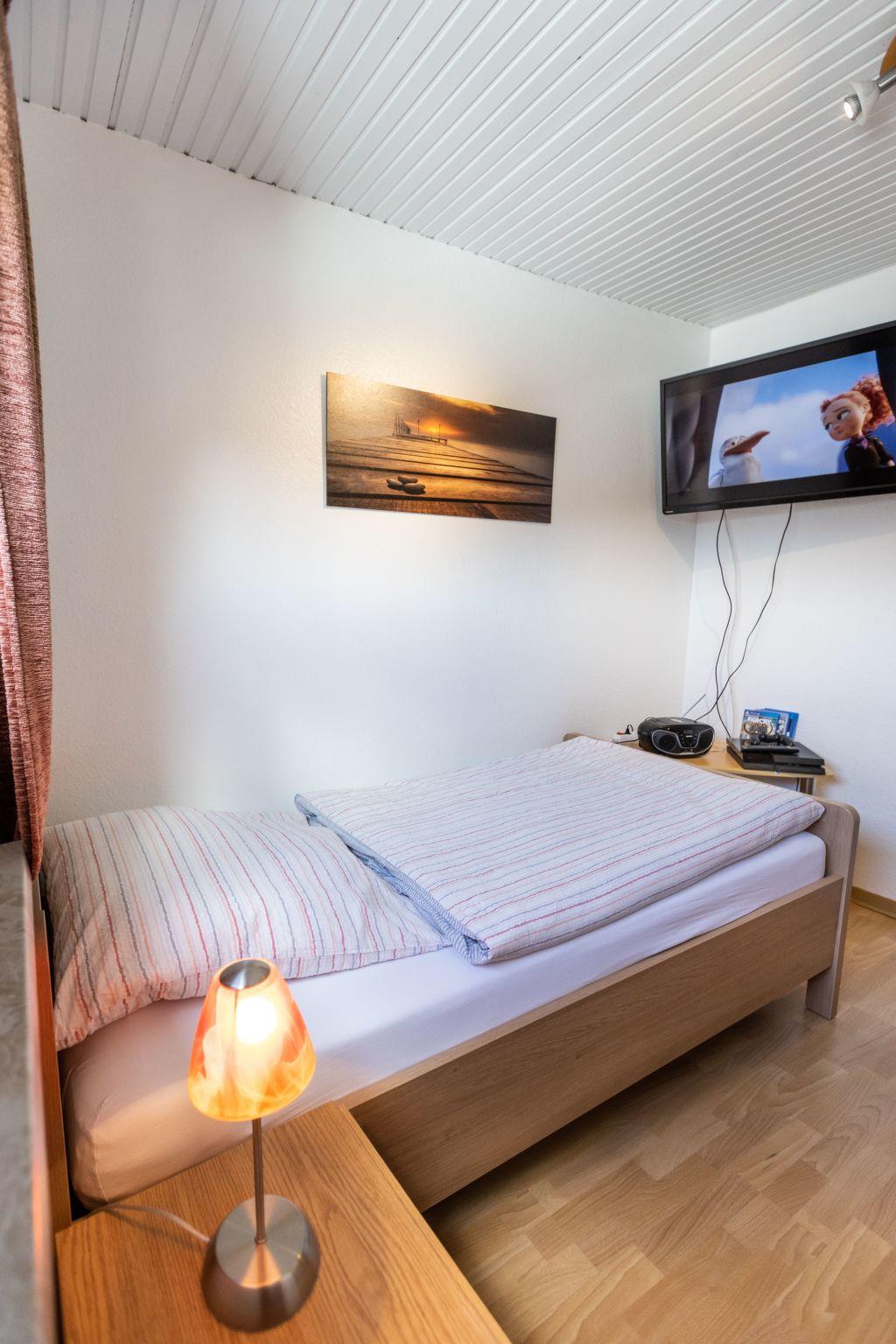 Die mit vier Sternen klassifizierte Ferienwohnung im ersten Stockwerk verfügt über eine Wohnfläche von ca. 51 m². Die Unterkunft ist aufgeteilt auf einen kombinierten Wohn- und Essbereich mit voll ausgestatteter Küchenzeile, zwei Schlafzimmer und ein Badezimmer. Der Wohnbereich bietet eine L Coucht-Sofa mit Couchtisch, eine Stehlampe, eine Anrichte mit 40-Zoll-Flachbildfernseher sowie eine Garderobe. In der Mitte des Raumes befindet sich ein Esstisch mit drei Stühlen. Die voll ausgestattete Küche verfügt neben der oben genannten Ausstattung zusätzlich über einen Backofen und eine Spülmaschine. Im ersten Schlafzimmer stehen ein Doppelbett (2,00 x 2,00 m), eine Kommode, ein Hocker sowie ein Radiowecker bereit. Das zweite Schlafzimmer ist mit einem Einzelbett (1,00 x 2,00 m) und einem Fernseher, Kleiderschrank und einer Kommode ausgestattet.Es gibt keine Möglichkeit ein E Auto zu Laden dafür ist der Hausstrom nicht ausgelegt Brandgefahr. Wir haben für Sie Kostenfreies W-Lan für Ausfälle und Störungen übernehmen wir keine Haftung.