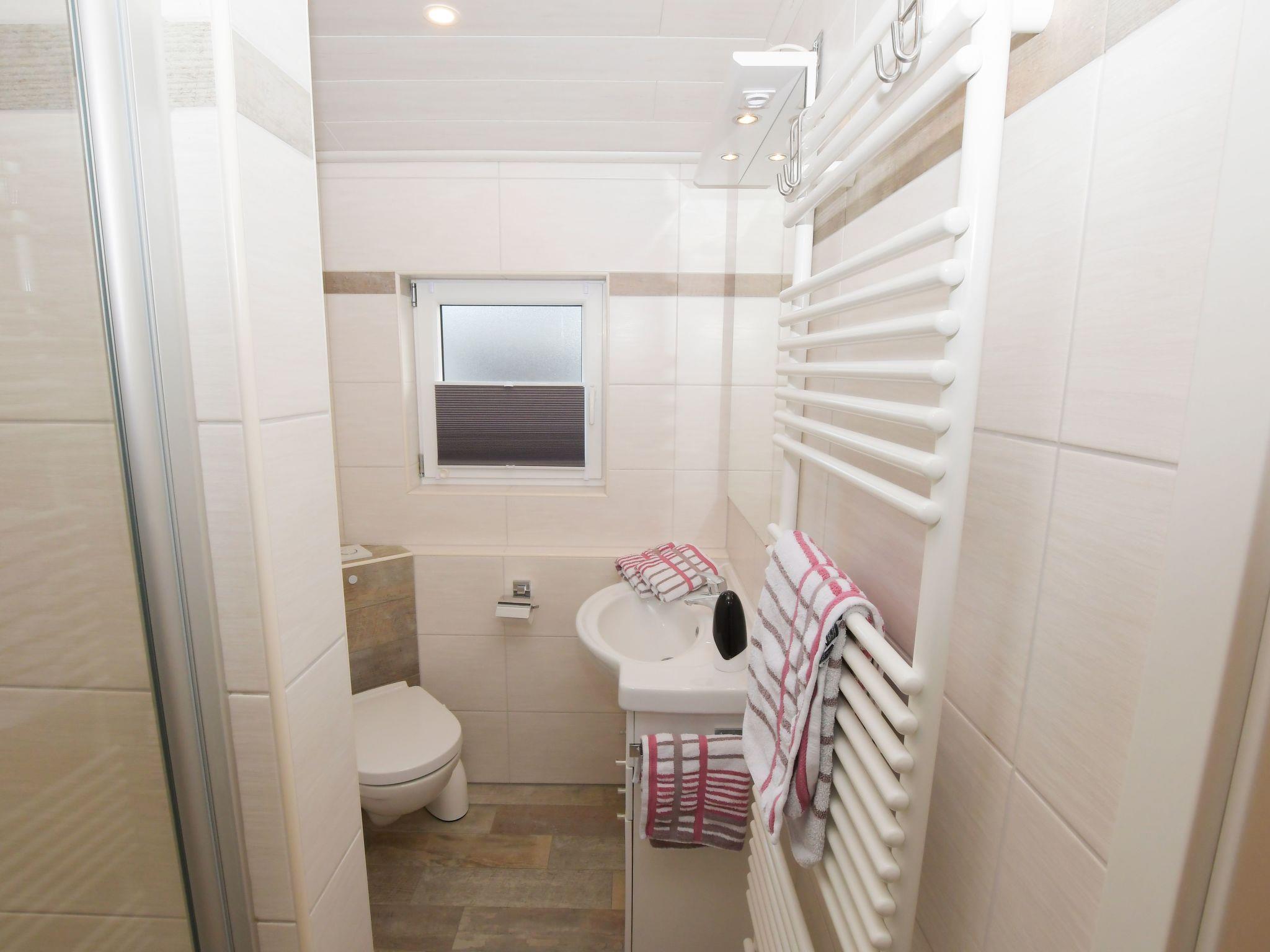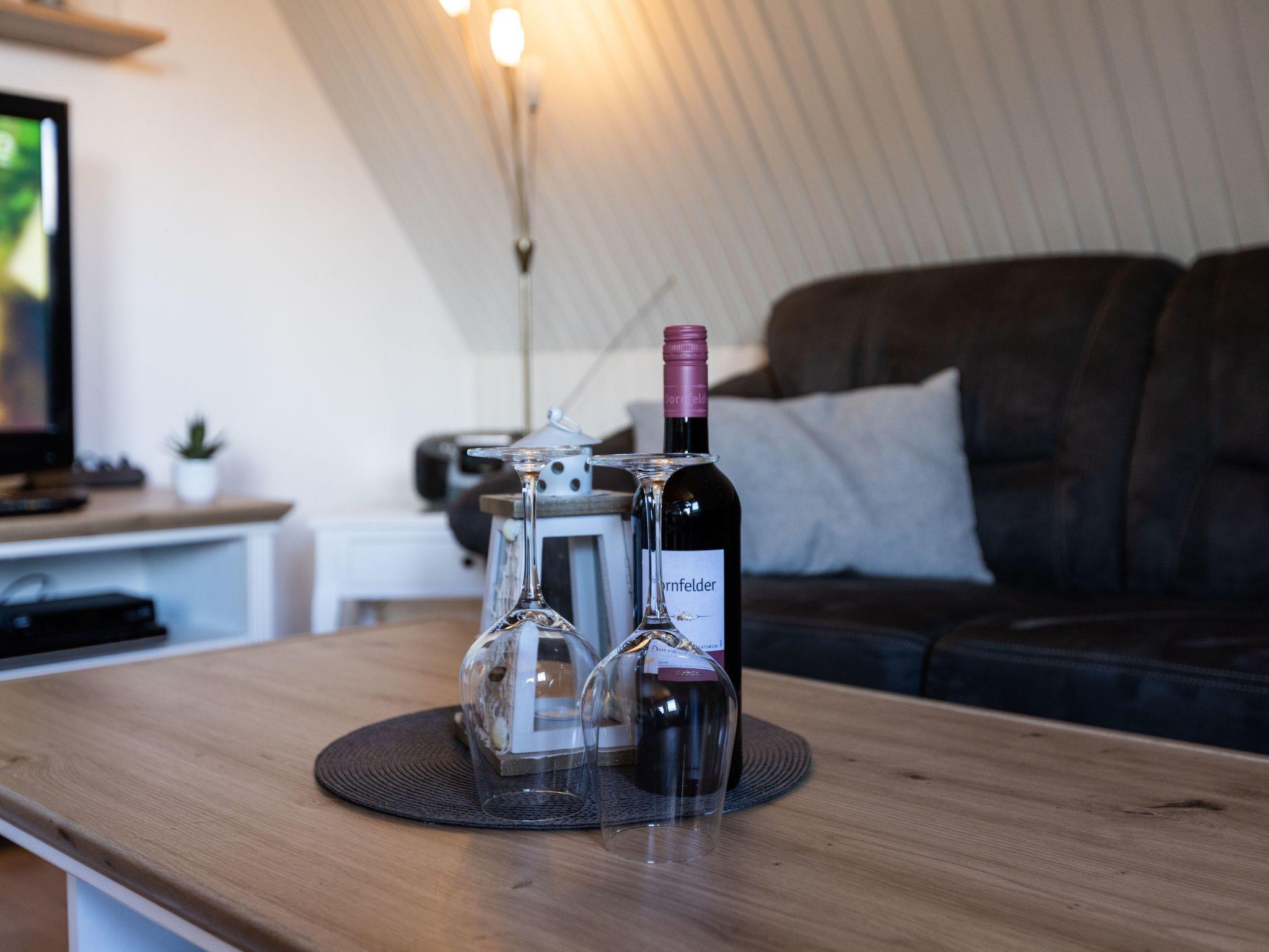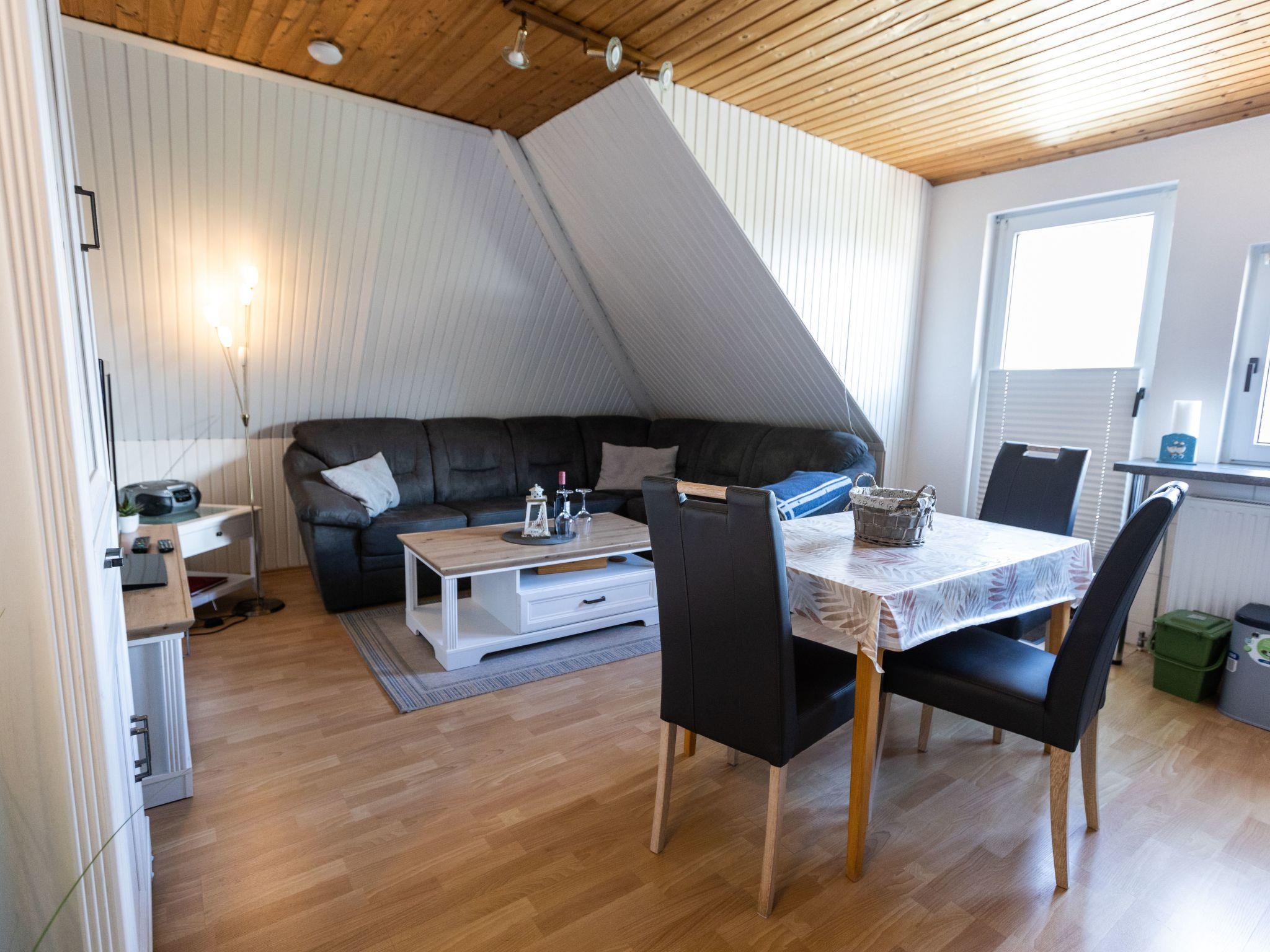 Die mit vier Sternen klassifizierte Ferienwohnung im ersten Stockwerk verfügt über eine Wohnfläche von ca. 51 m². Die Unterkunft ist aufgeteilt auf einen kombinierten Wohn- und Essbereich mit voll ausgestatteter Küchenzeile, zwei Schlafzimmer und ein Badezimmer. Der Wohnbereich bietet eine L Coucht-Sofa mit Couchtisch, eine Stehlampe, eine Anrichte mit 40-Zoll-Flachbildfernseher sowie eine Garderobe. In der Mitte des Raumes befindet sich ein Esstisch mit drei Stühlen. Die voll ausgestattete Küche verfügt neben der oben genannten Ausstattung zusätzlich über einen Backofen und eine Spülmaschine. Im ersten Schlafzimmer stehen ein Doppelbett (2,00 x 2,00 m), eine Kommode, ein Hocker sowie ein Radiowecker bereit. Das zweite Schlafzimmer ist mit einem Einzelbett (1,00 x 2,00 m) und einem Fernseher, Kleiderschrank und einer Kommode ausgestattet.Es gibt keine Möglichkeit ein E Auto zu Laden dafür ist der Hausstrom nicht ausgelegt Brandgefahr. Wir haben für Sie Kostenfreies W-Lan für Ausfälle und Störungen übernehmen wir keine Haftung.