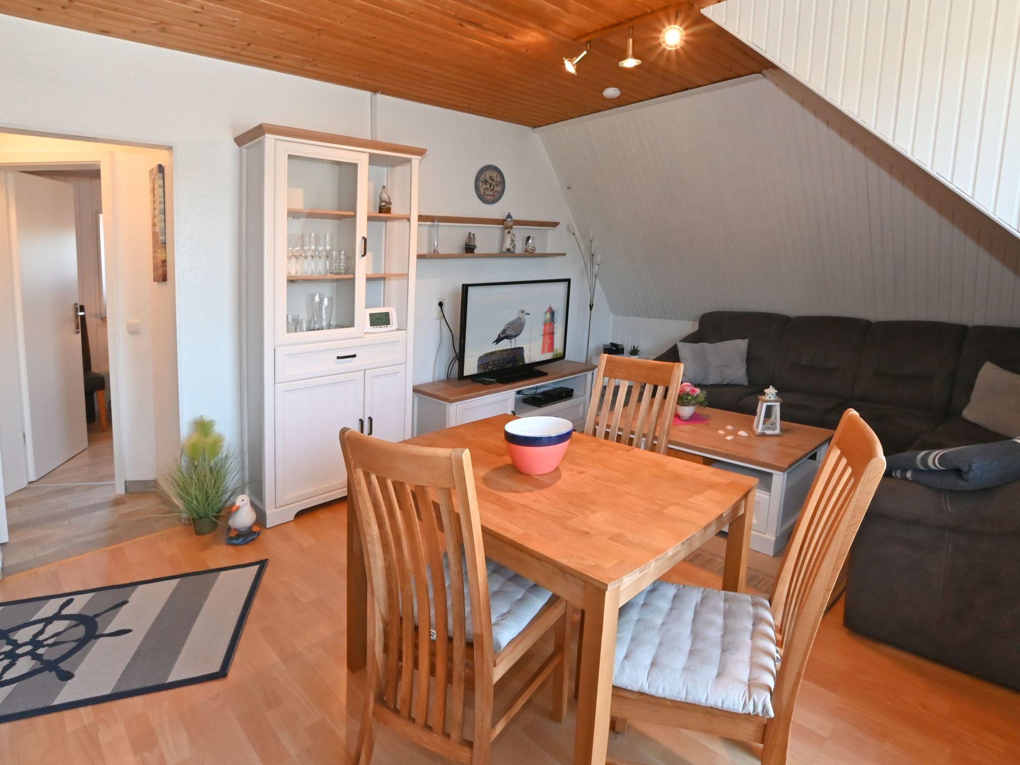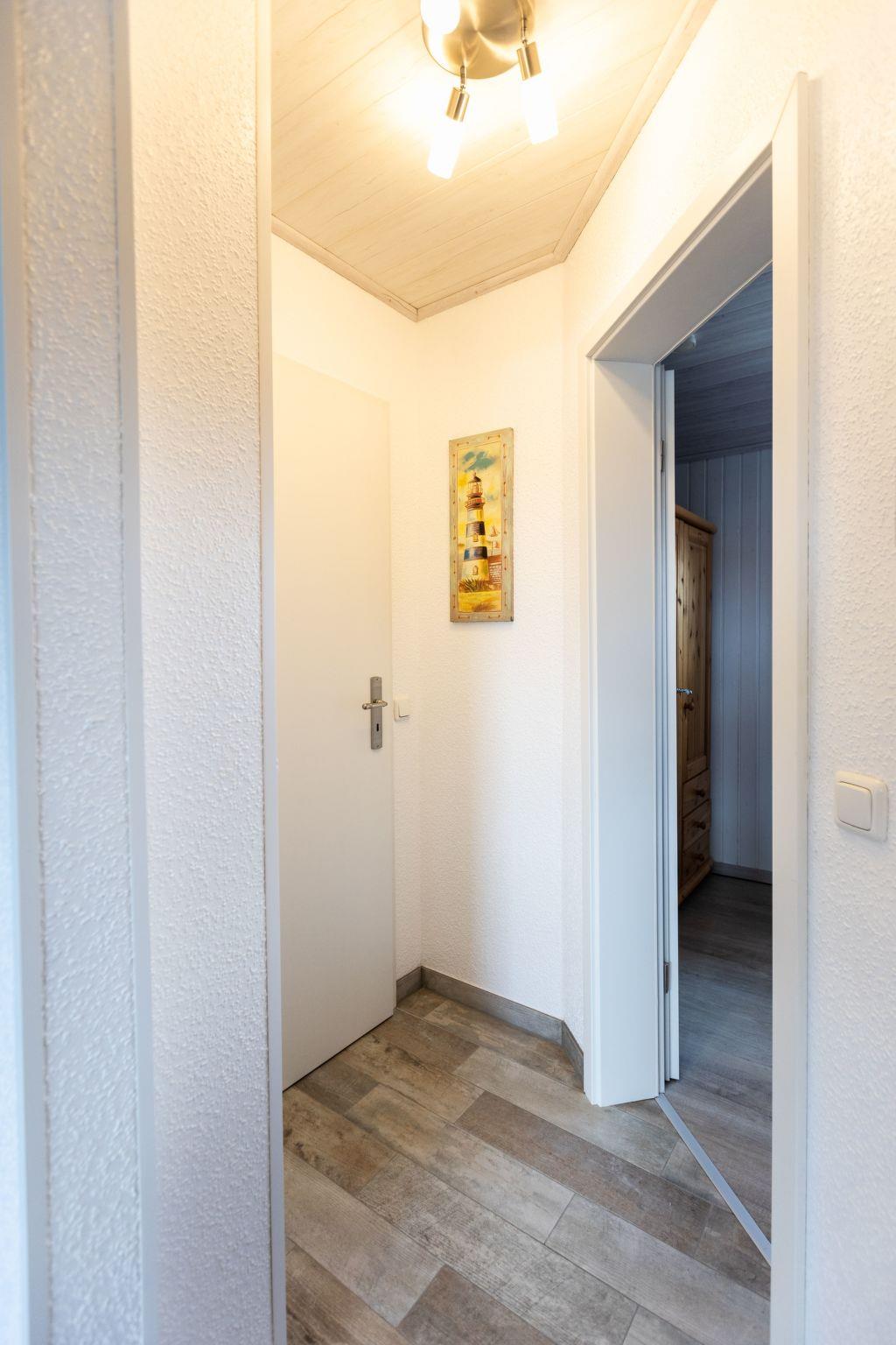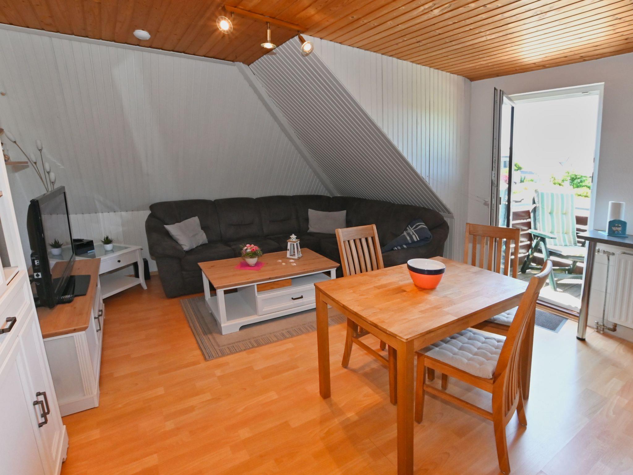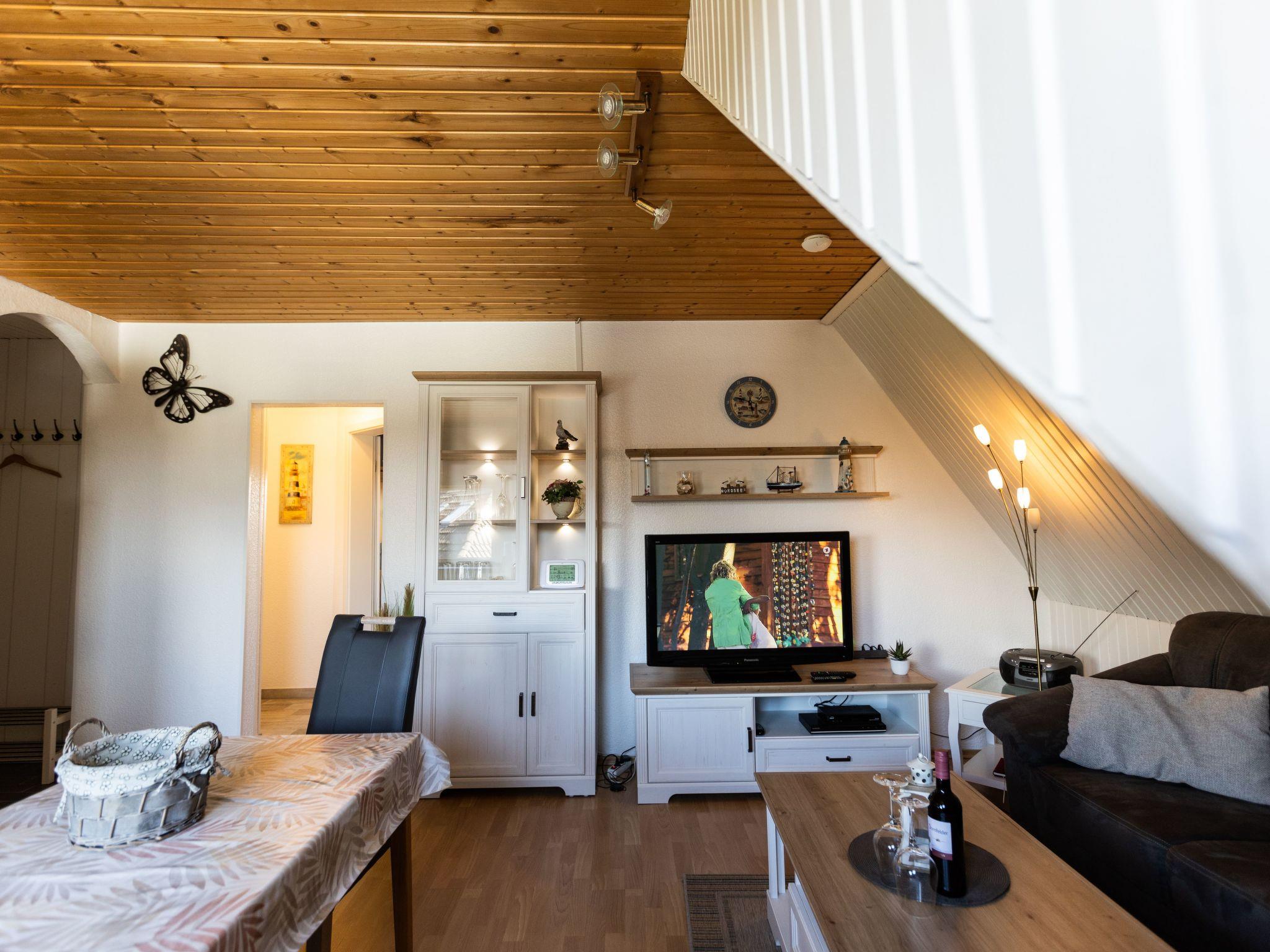 Die mit vier Sternen klassifizierte Ferienwohnung im ersten Stockwerk verfügt über eine Wohnfläche von ca. 51 m². Die Unterkunft ist aufgeteilt auf einen kombinierten Wohn- und Essbereich mit voll ausgestatteter Küchenzeile, zwei Schlafzimmer und ein Badezimmer. Der Wohnbereich bietet eine L Coucht-Sofa mit Couchtisch, eine Stehlampe, eine Anrichte mit 40-Zoll-Flachbildfernseher sowie eine Garderobe. In der Mitte des Raumes befindet sich ein Esstisch mit drei Stühlen. Die voll ausgestattete Küche verfügt neben der oben genannten Ausstattung zusätzlich über einen Backofen und eine Spülmaschine. Im ersten Schlafzimmer stehen ein Doppelbett (2,00 x 2,00 m), eine Kommode, ein Hocker sowie ein Radiowecker bereit. Das zweite Schlafzimmer ist mit einem Einzelbett (1,00 x 2,00 m) und einem Fernseher, Kleiderschrank und einer Kommode ausgestattet.Es gibt keine Möglichkeit ein E Auto zu Laden dafür ist der Hausstrom nicht ausgelegt Brandgefahr. Wir haben für Sie Kostenfreies W-Lan für Ausfälle und Störungen übernehmen wir keine Haftung.