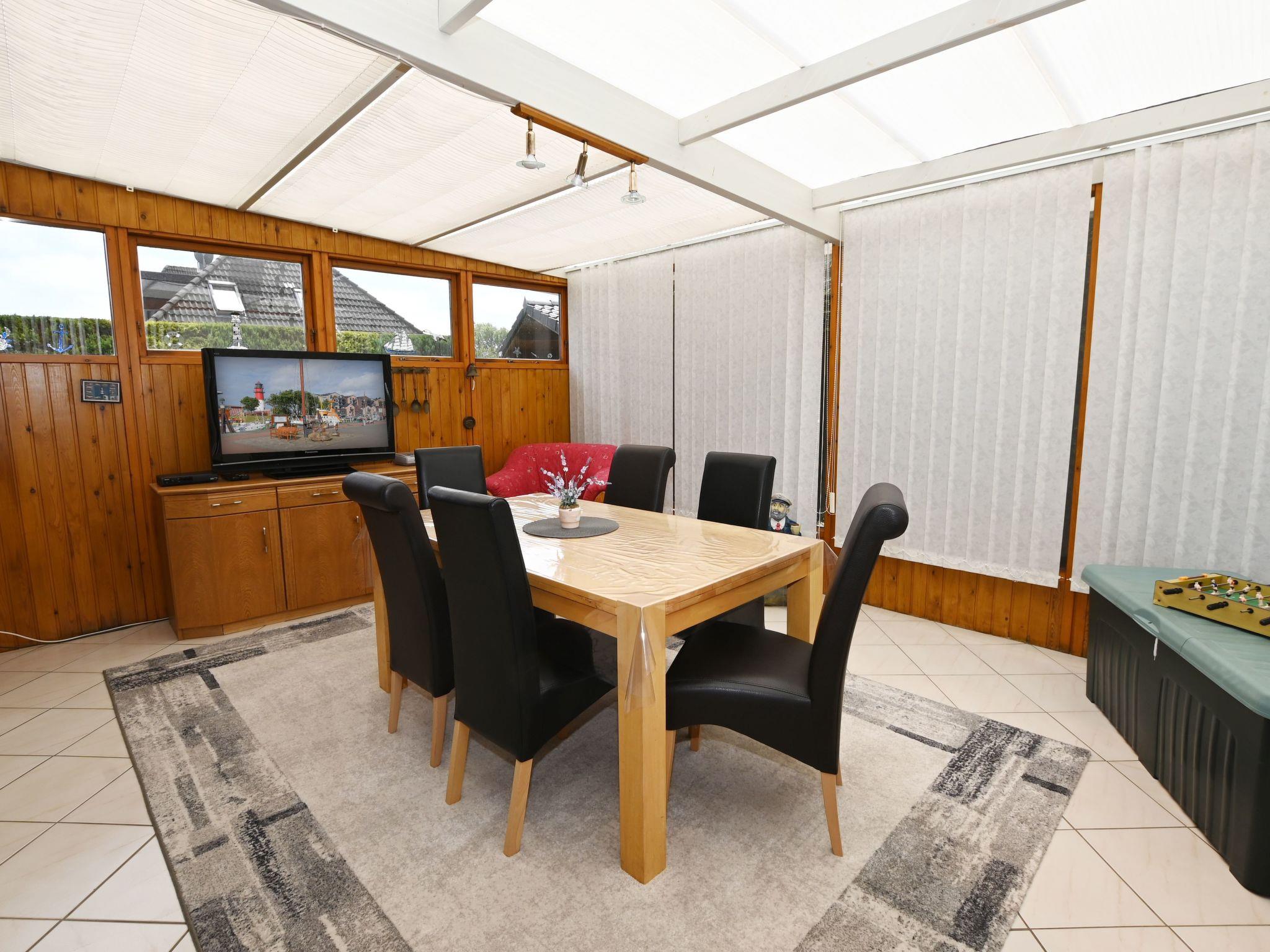 Der Wintergarten bietet Ihnen einen schönen Blick in den Garten und ist eingerichtet mit einem großen Tisch und sechs Stühlen, einem Sessel, einer Anrichte mit Sat.-TV sowie einer Spielkonsole. Im Außenbereich stehen Ihnen ein kleiner Garten sowie eine Terrasse mit Gartenmöbeln zur alleinigen Nutzung zur Verfügung. Bis zu sechs Personen finden am Tisch unter der elektrischen Markise Platz. Auch ein eigener Grill wird bereitgestellt. Es gibt keine Möglichkeit ein E Auto zu Laden dafür ist der Hausstrom nicht ausgelegt Brandgefahr.