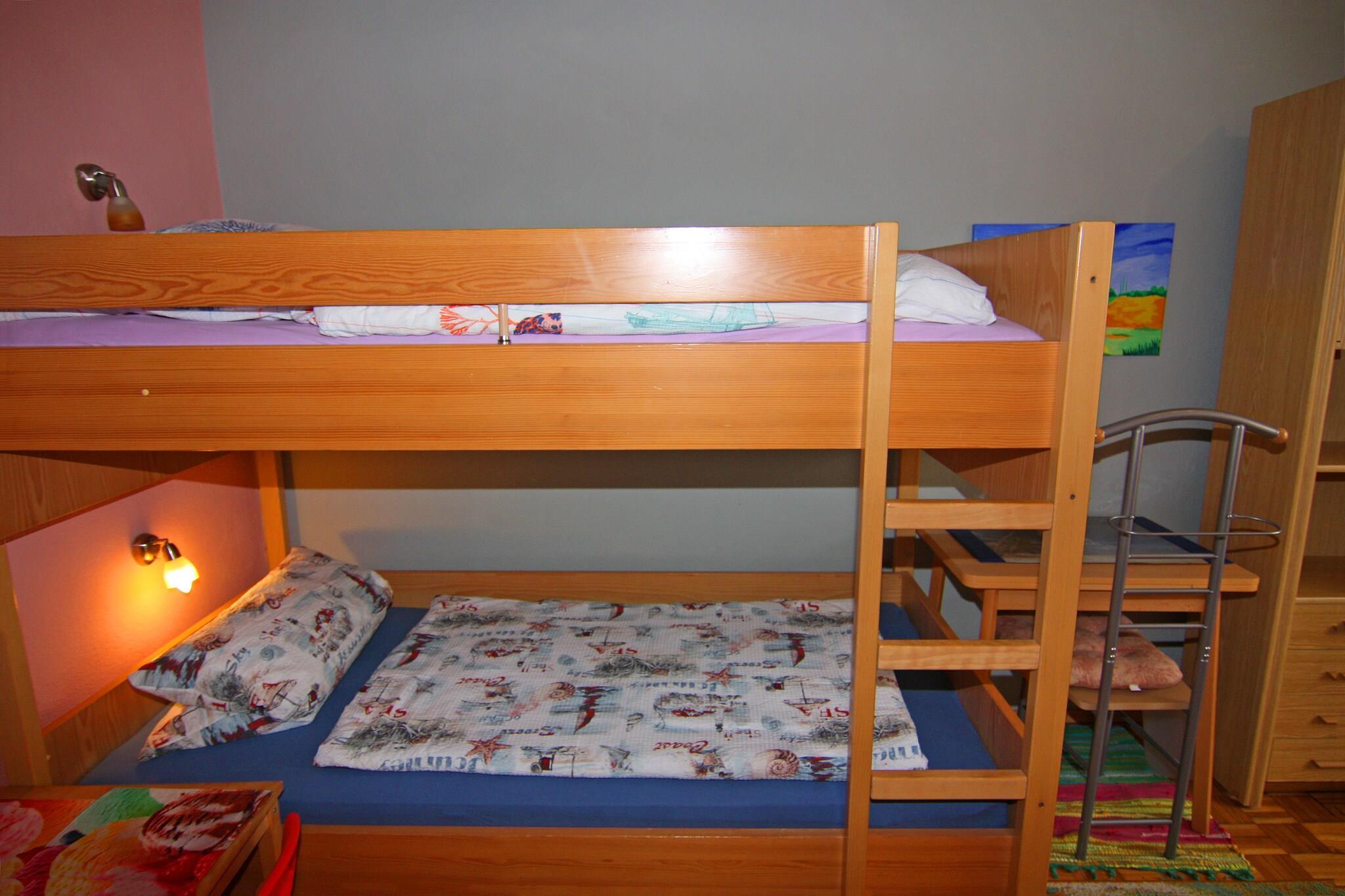 Parterre: (offene Küche(Esstisch(4 Personen), Toaster, Kochherd(4 Kochplatten, Ceranfeld), Dunstabzugshaube, Kaffeemaschine, Backofen, Spülmaschine, Kühl-/Gefrierkombination), Wohn/Esszimmer(Schrankbett 1 Person, TV(Kabel)), Schlafzimmer(Doppelbett), Schlafzimmer(Etagenbett oder 2 Einzelbetten), Badezimmer(Dusche, Waschbecken, Toilette), Flur) Grill, Heizung(Gas), Terrasse(überdacht), Gartenmöbel, Parkplatz, Sonnenschirm, Sandkasten, Hochstuhl, Schaukel, Babybett (kostenlos)