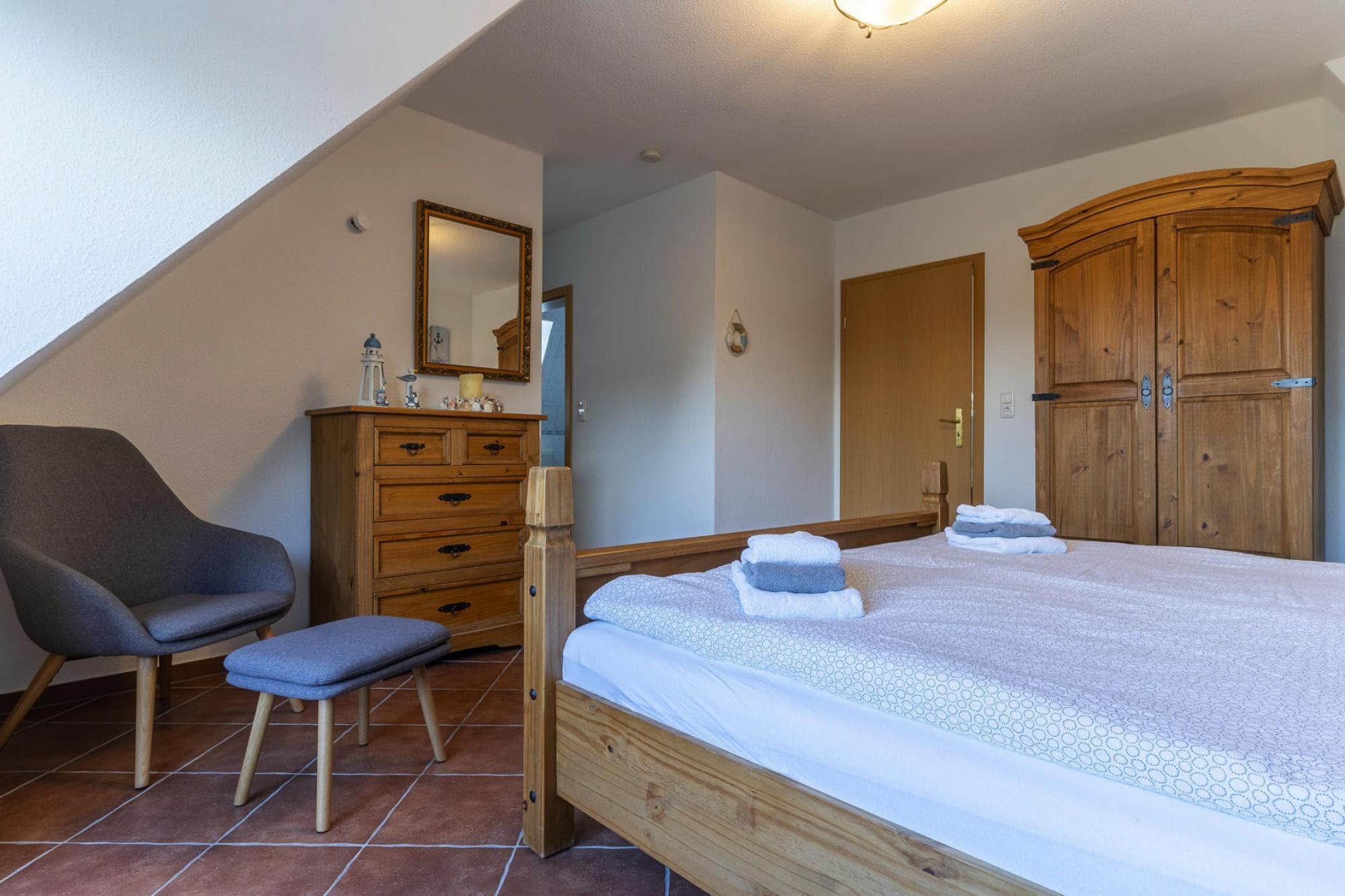 In der 1. Etage: (Küche(Kochplatte(4 Kochplatten, Ceranfeld), Wasserkocher, Toaster, Kaffeemaschine, Spülmaschine, Kühl-/Gefrierkombination), Wohn/Esszimmer(TV(Kabel), Radio, CD-Spieler), Schlafzimmer(Doppelbett, TV(Kabel)), Schlafzimmer(Erreichbar über ein Durchgangs(schlaf)zimmer)(Einzelbett, Einzelunterschiebebett, TV(Satellit)), Badezimmer(Waschbecken, Dusche, Toilette)) Balkon, Heizung, Fahrradabstellraum, Parkplatz, Babybett (kostenpflichtig), Wäschepaket inklusive