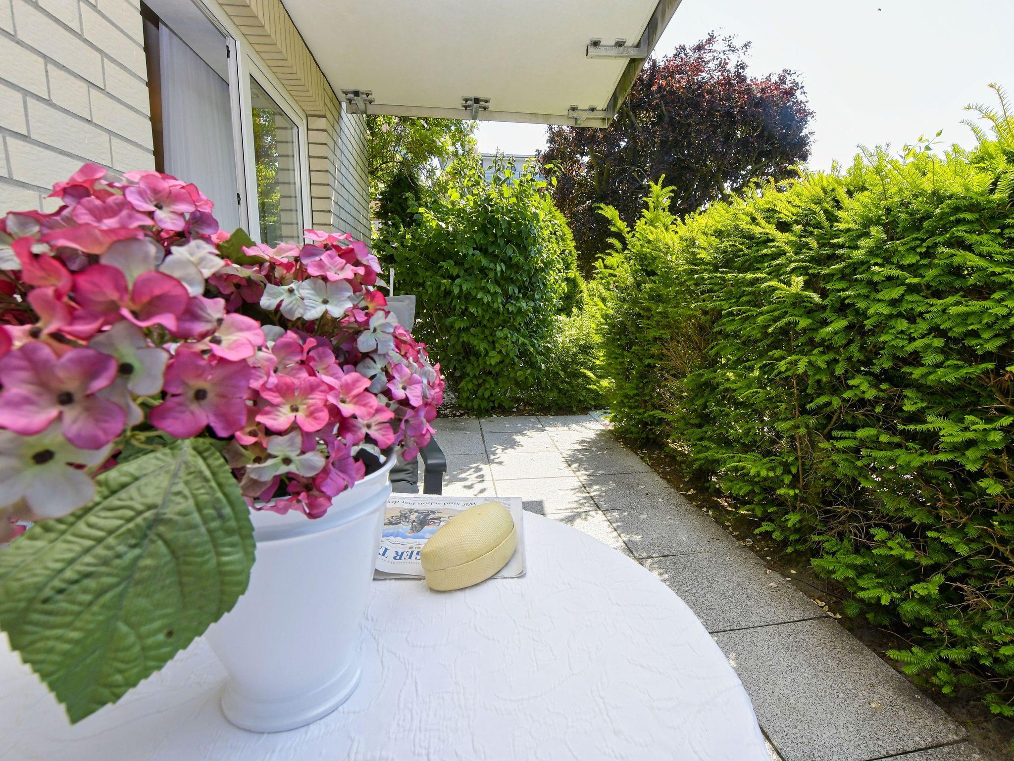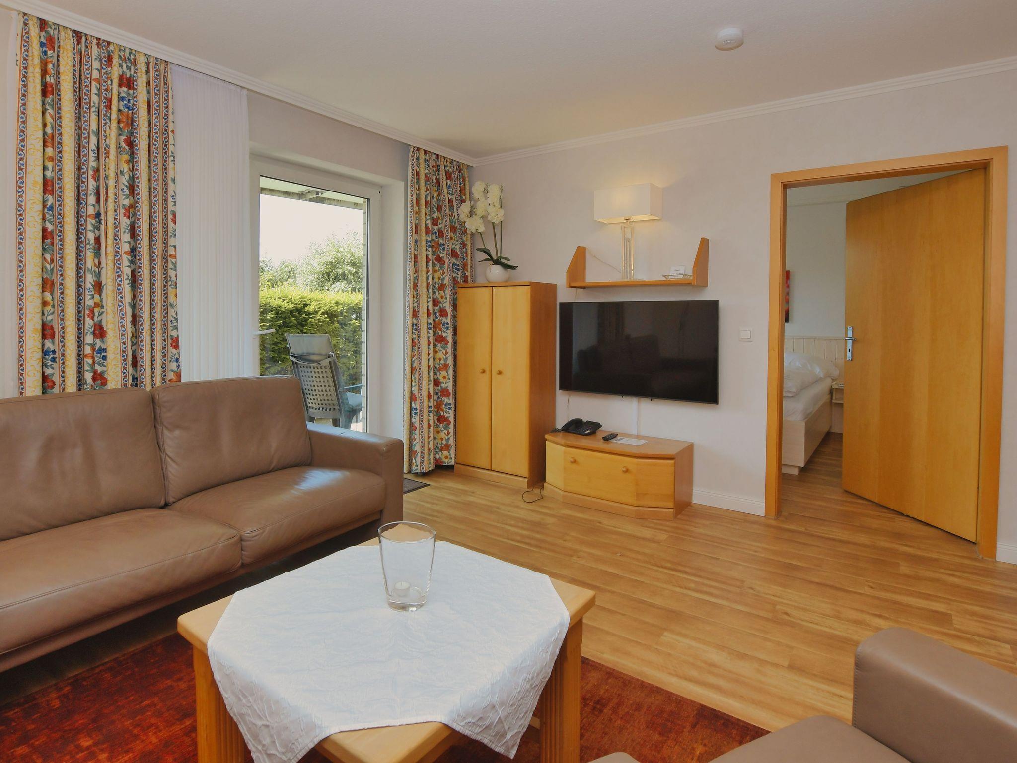 Appartement mit Terrasse und extra breiten Türen für Rollstuhlfahrer. Die beiden Schlafzimmer sind ruhig gelegen zur Rückseite des Hauses.