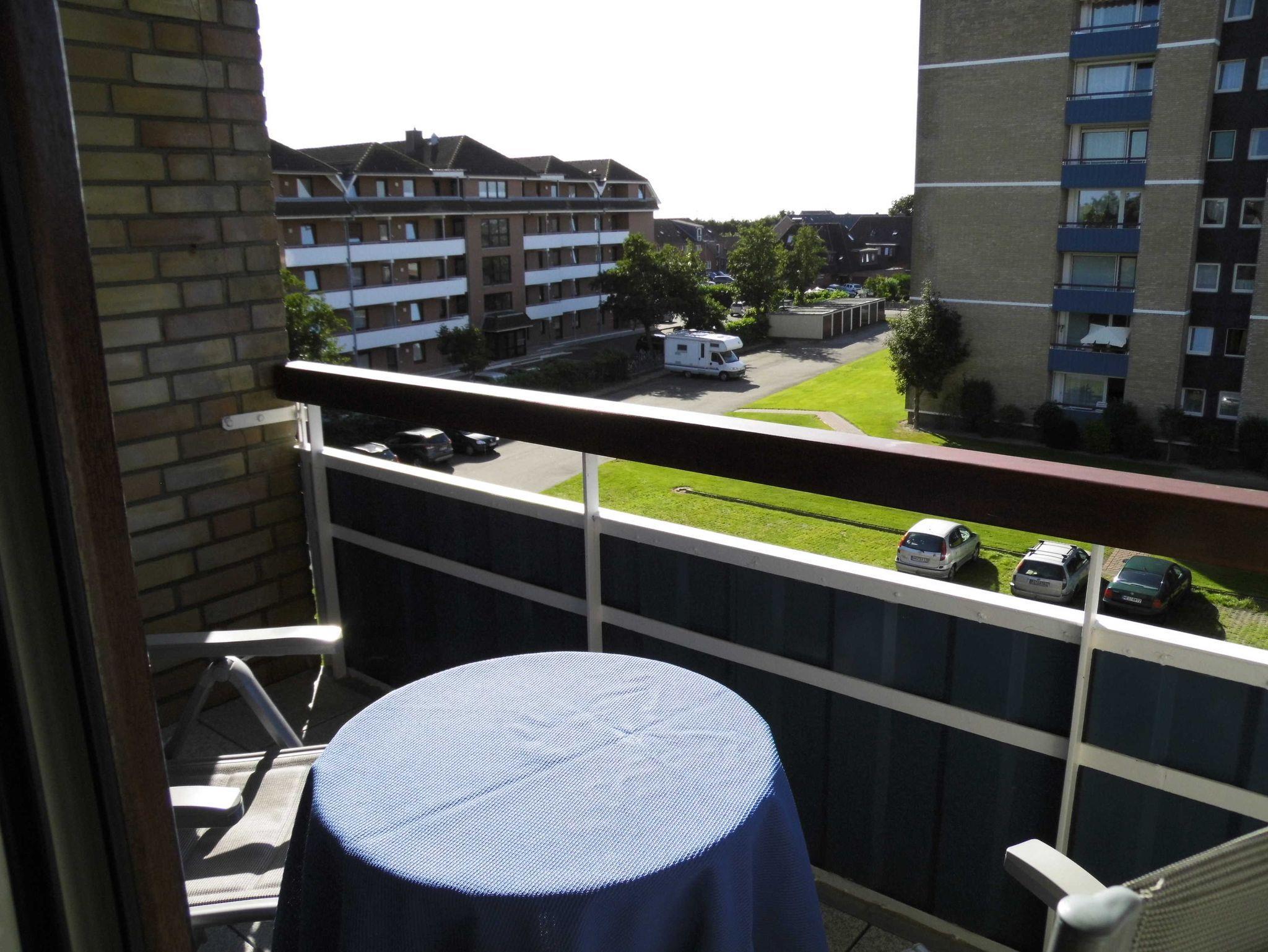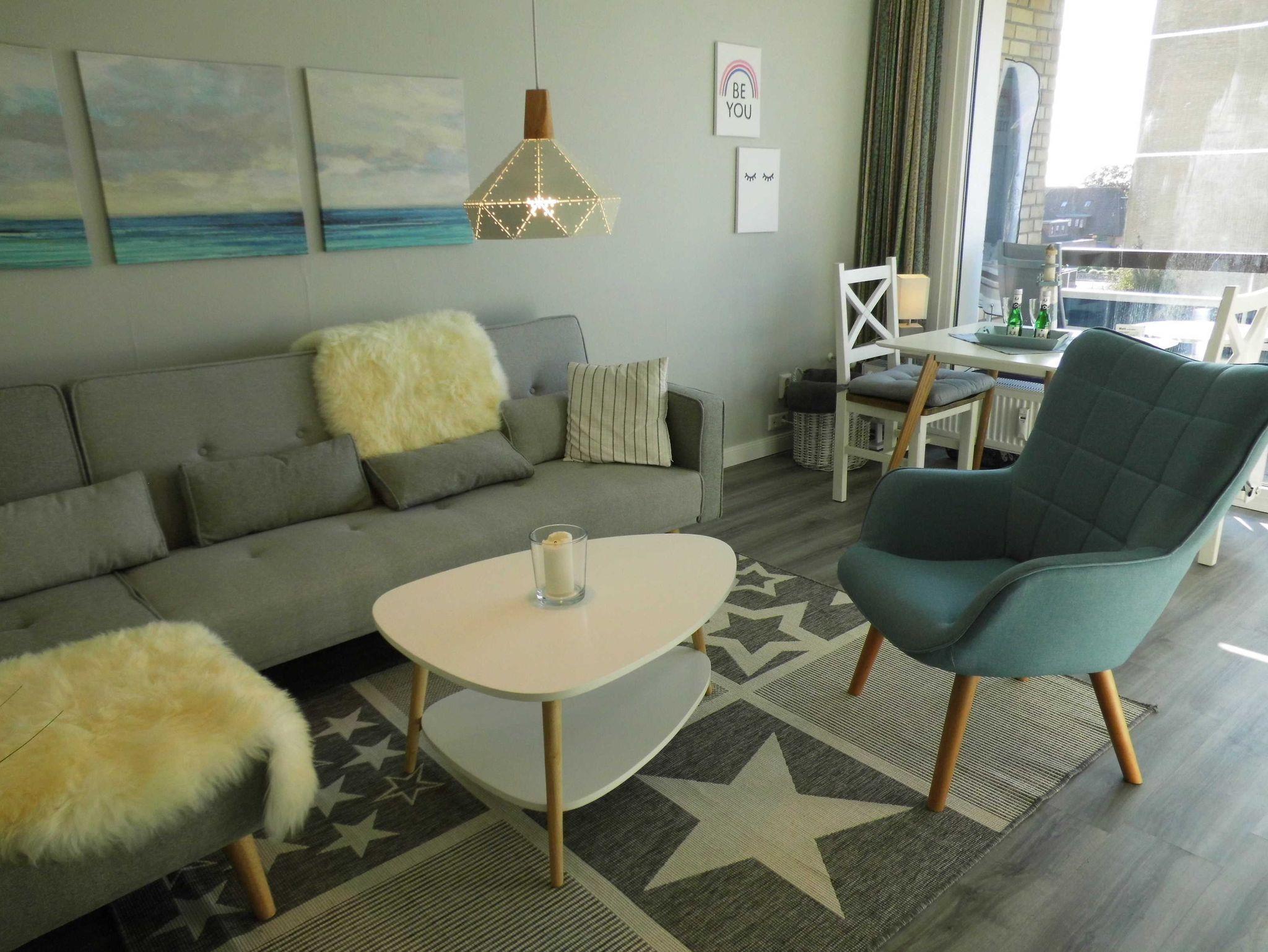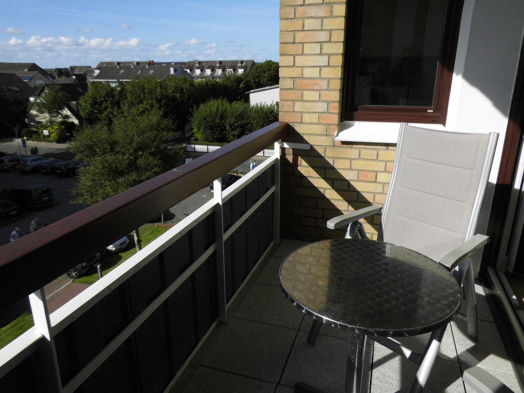 Modernes 2-Raum-Appartement in Büsum mit möbliertem Balkon und seitlichem Meerblick.