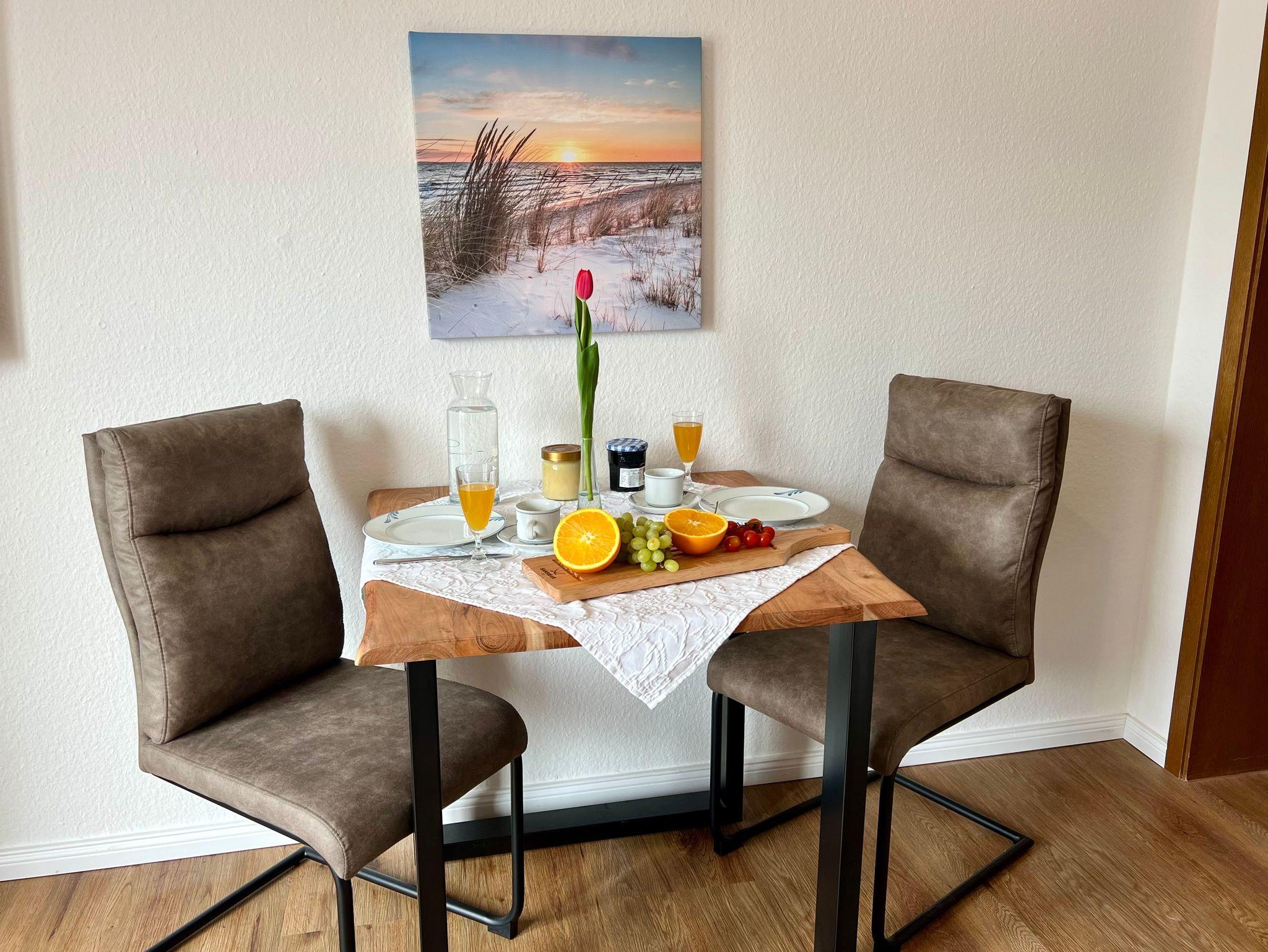 CA. 50 QM FÜR 2 PERSONEN + 1 KIND, MIT BALKON Wohnraum mit Schlafcouch, 1 Sessel, Essbereich, SAT-TV, Laminatböden. Balkon nach Südwesten mit Gartenmöbel Schlafraum mit Doppelbett, 2 Nachttischen, großem Kleiderschrank, Wertfach Küchenzeile mit 2 Platteninduktionsherd, Geschirrspüler, Spüle, Kühlschrank, Geschirr und Hausrat, Kaffeemaschine, Wasserkocher und Toaster Dusche/WC, Waschbecken, Spiegelschrank, Föhn