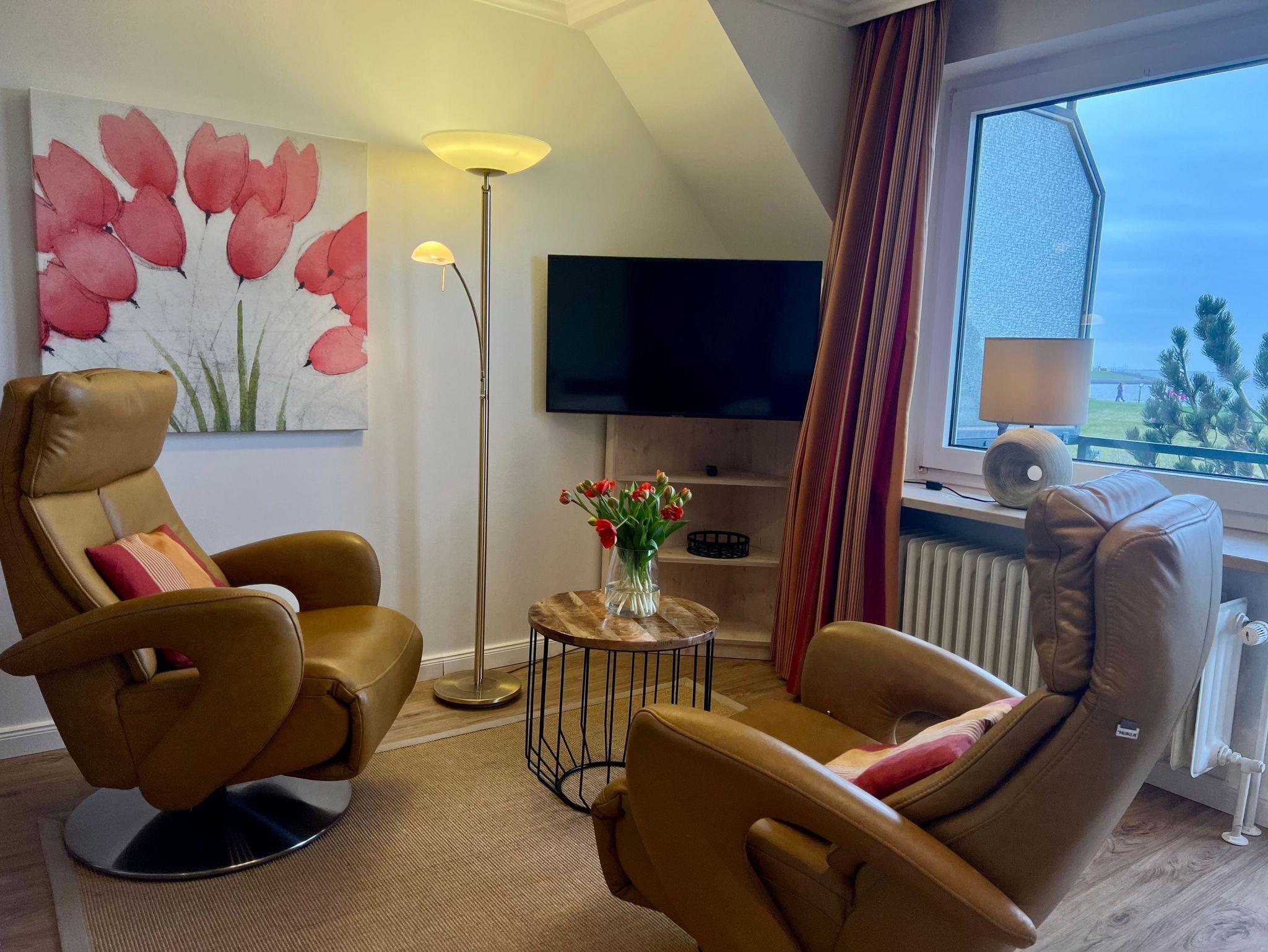 Modernes Appartement mit Meerblick direkt am Deich in Büsum, komfortabel und ruhig gelegen.
