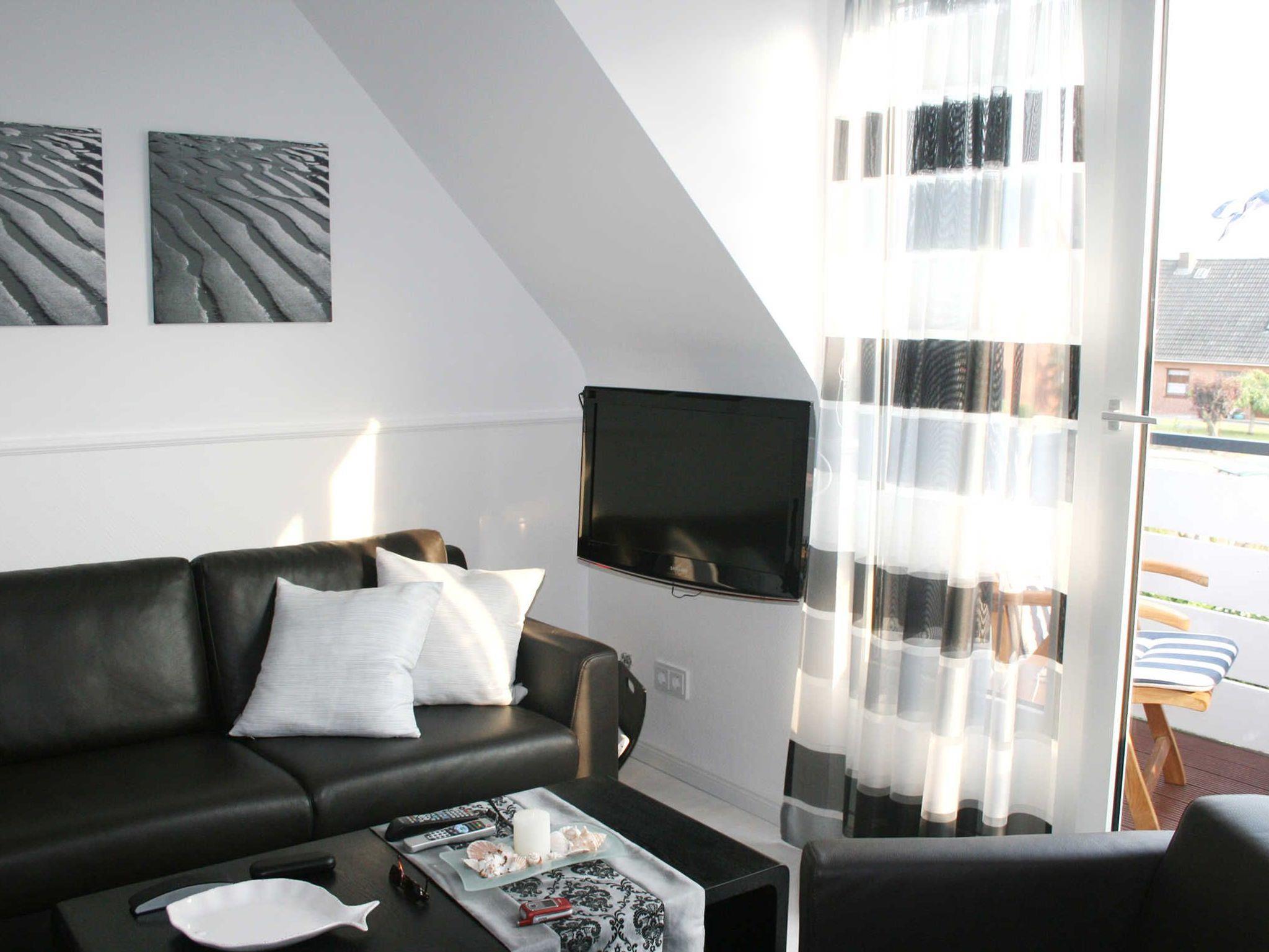 Neben einem großen Flatscreen mit digitalem TV-Empfang sorgt eine Hifi-Anlage für kompromissloses Entertainment. Schlafzimmer mit zweitem Fernseher. Genießen Sie die maritime und helle Atmosphäre in diesem Appartement.