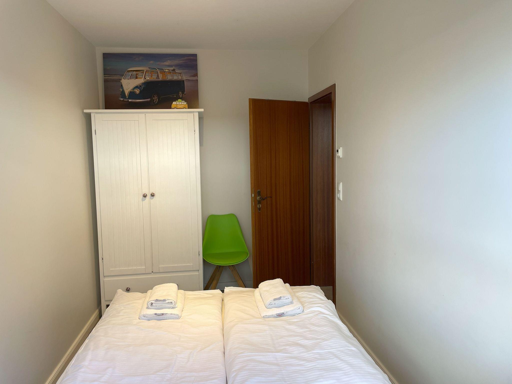 • Im Schlafzimmer befindet sich ein Doppelbett (1,40 x 2,00 m) mit Nachttisch