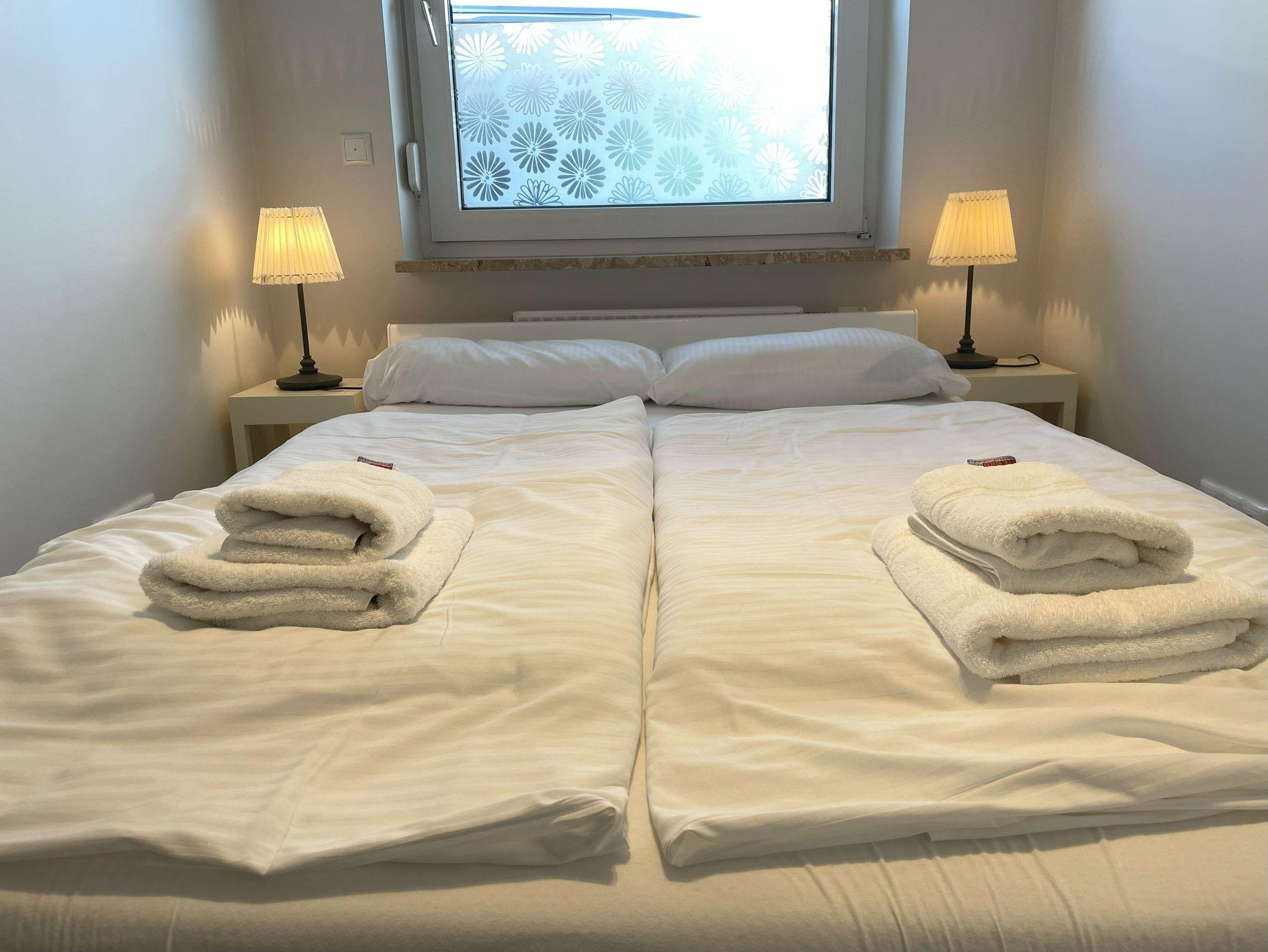 • 5 Wohnungen sind für 1-3 Personen ausgestattet. Sie haben ein Schlafzimmer mit 2 Betten sowie eine Schlafcouch im Wohnzimmer.