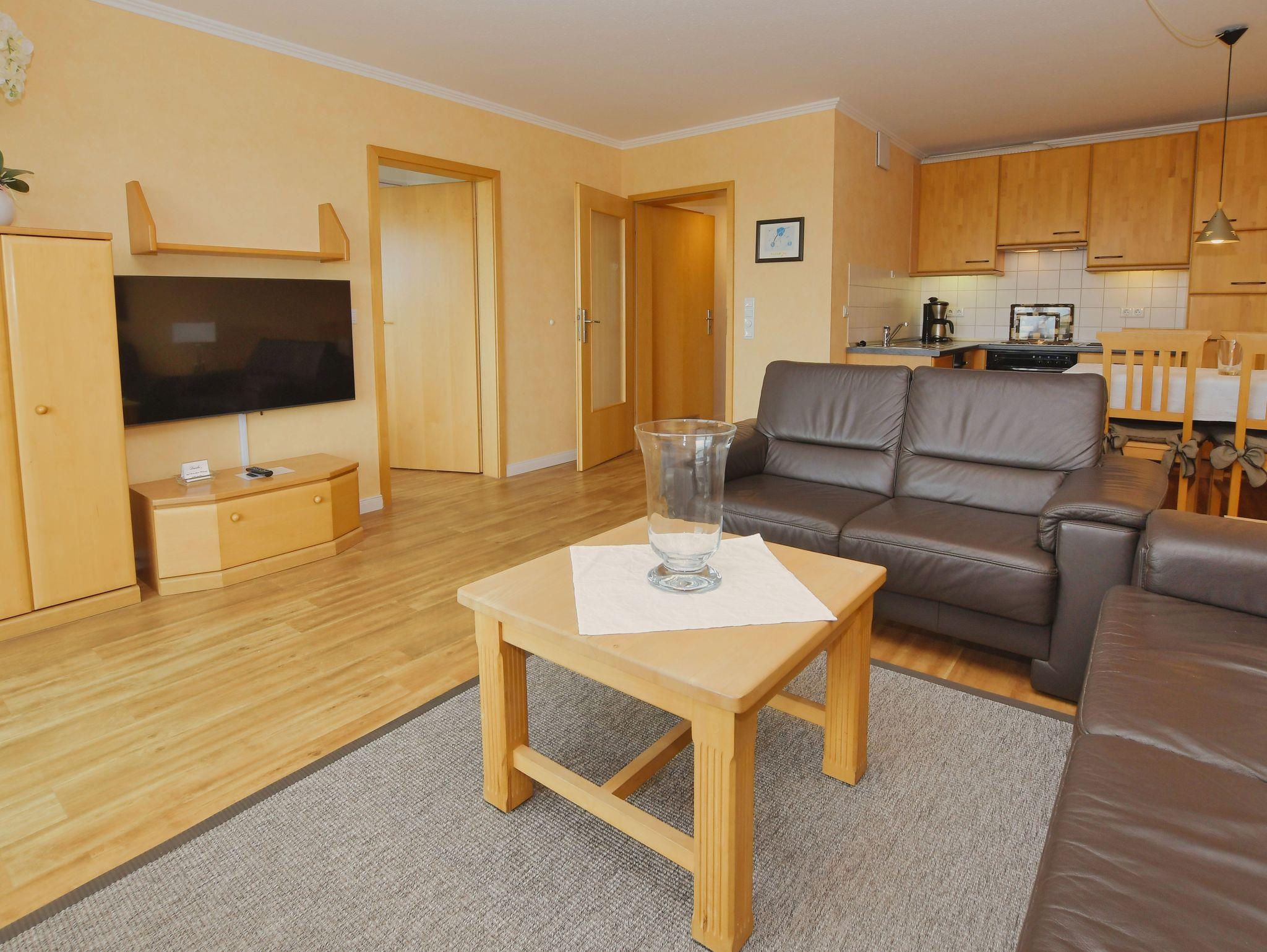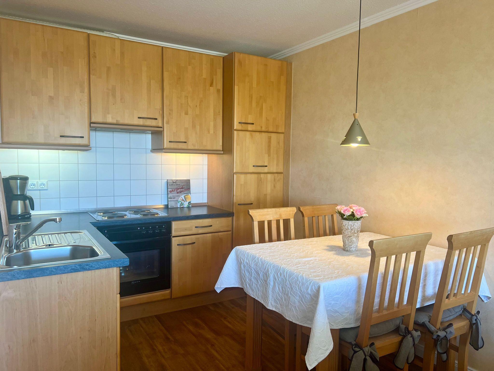 Geräumiges 3-Zimmer-Appartement für 4-5 Personen mit Blick über den Deich (bedingter Meerblick). Die beiden Schlafzimmer sind ruhig gelegen zur Rückseite des Hauses.