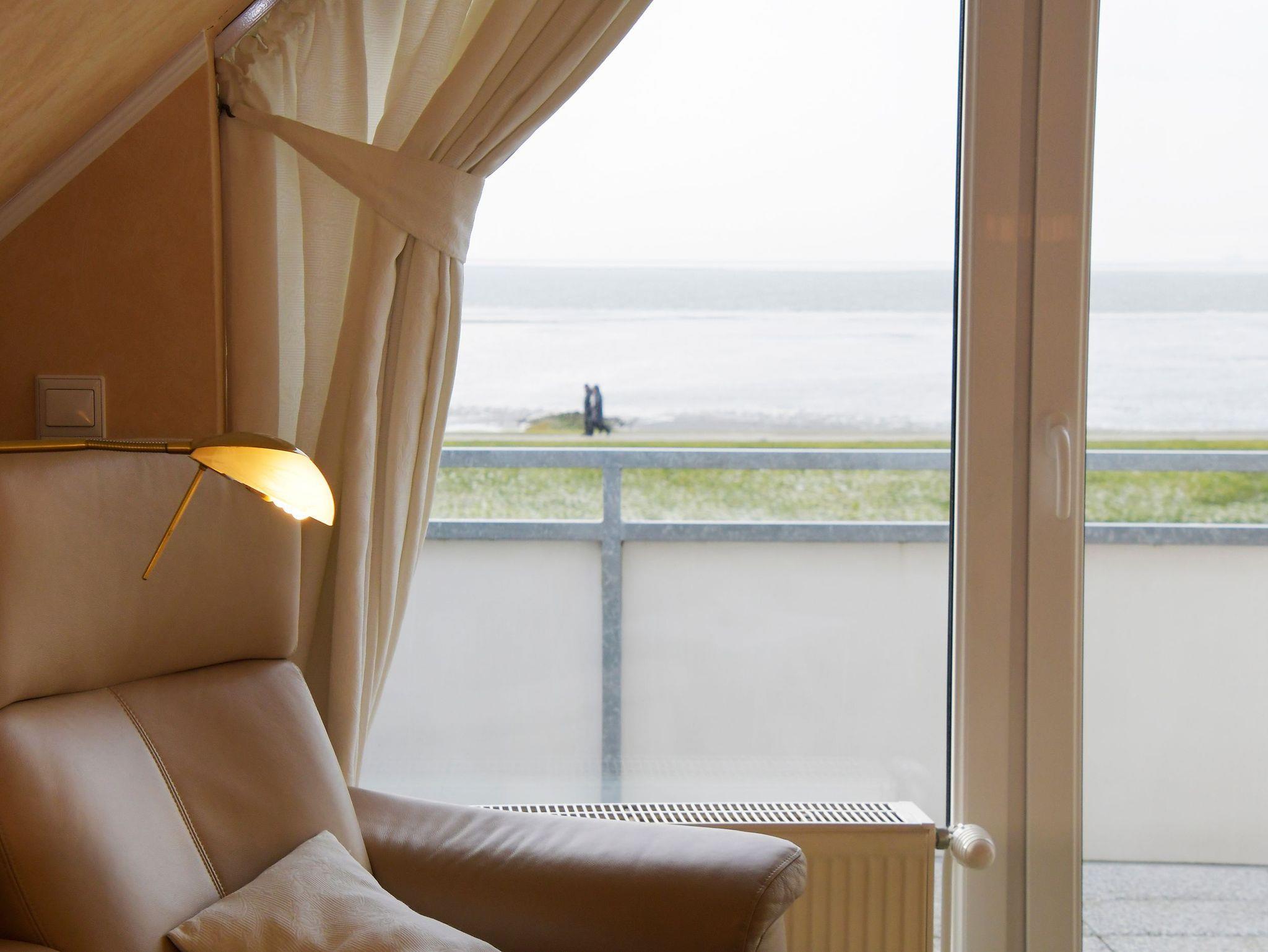 Exklusives Appartement mit Meerblick direkt am Deich in Büsum, mit Balkon, moderner Ausstattung und Wellnessangeboten.