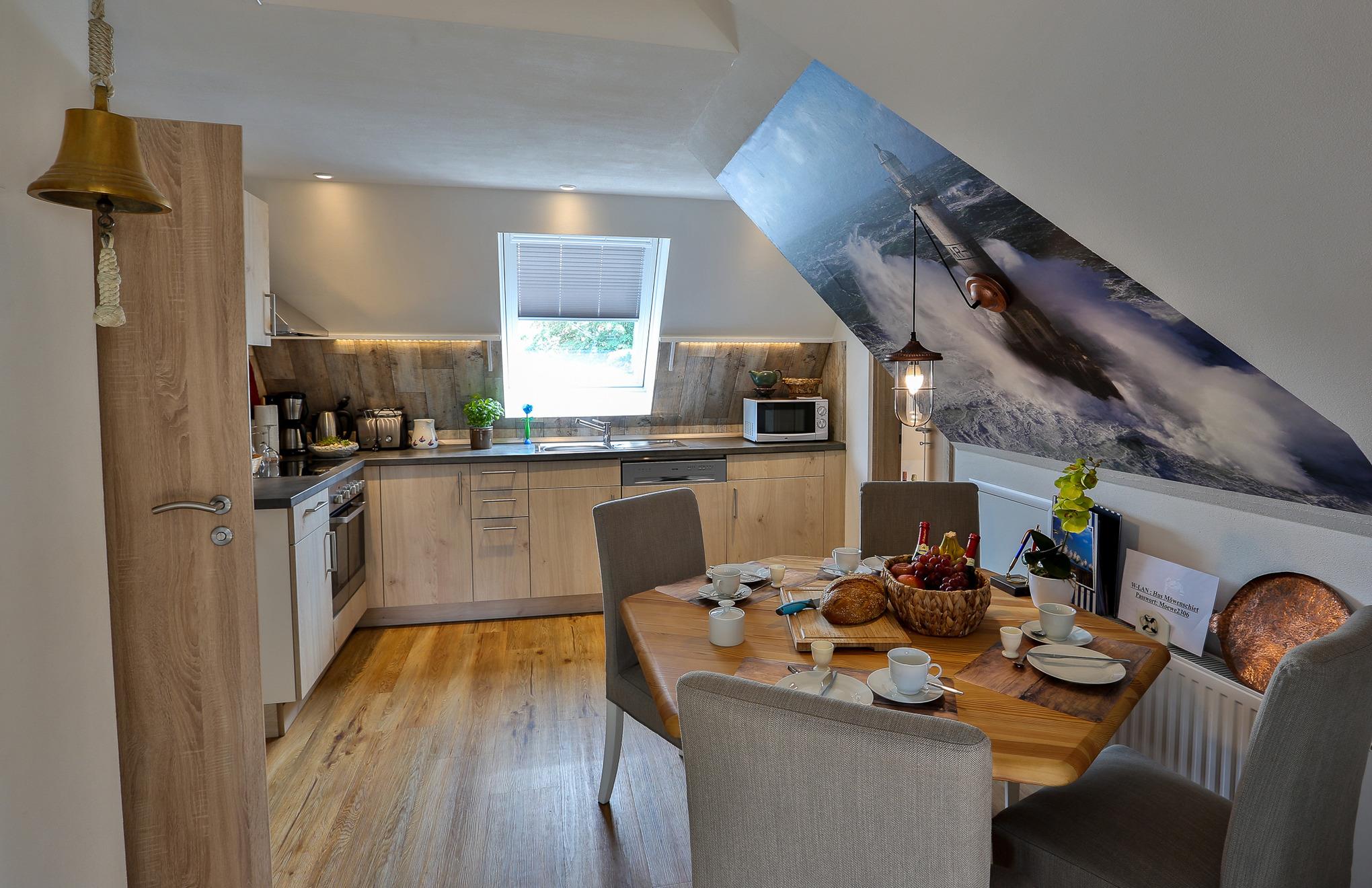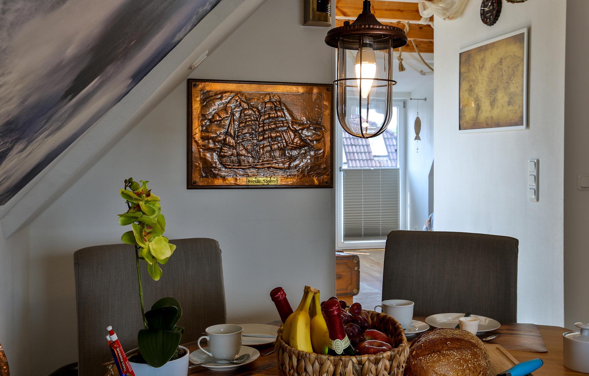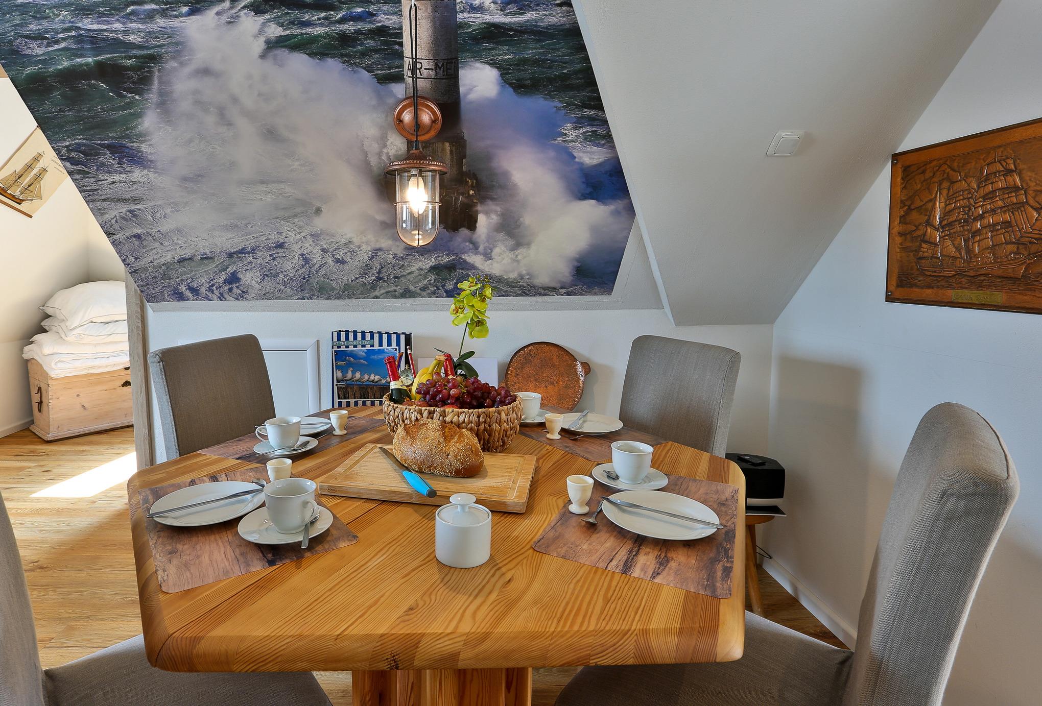 Im stielvollen Ambiente können Sie es sich auf zwei anspechenden Ledersofas gemütlich machen und von dort aus auf einem großen Flachbild-TV ihre Lieblings Sendungen ansehen. Die Dekoration integriert modernes Wohnen mit den gemütlichen Flair Schleswig-Holsteins mit seiner maritimen Art, ohne aufdringlich zu sein. Wir bieten ihnen natürlich kostenloses W-Lan an.