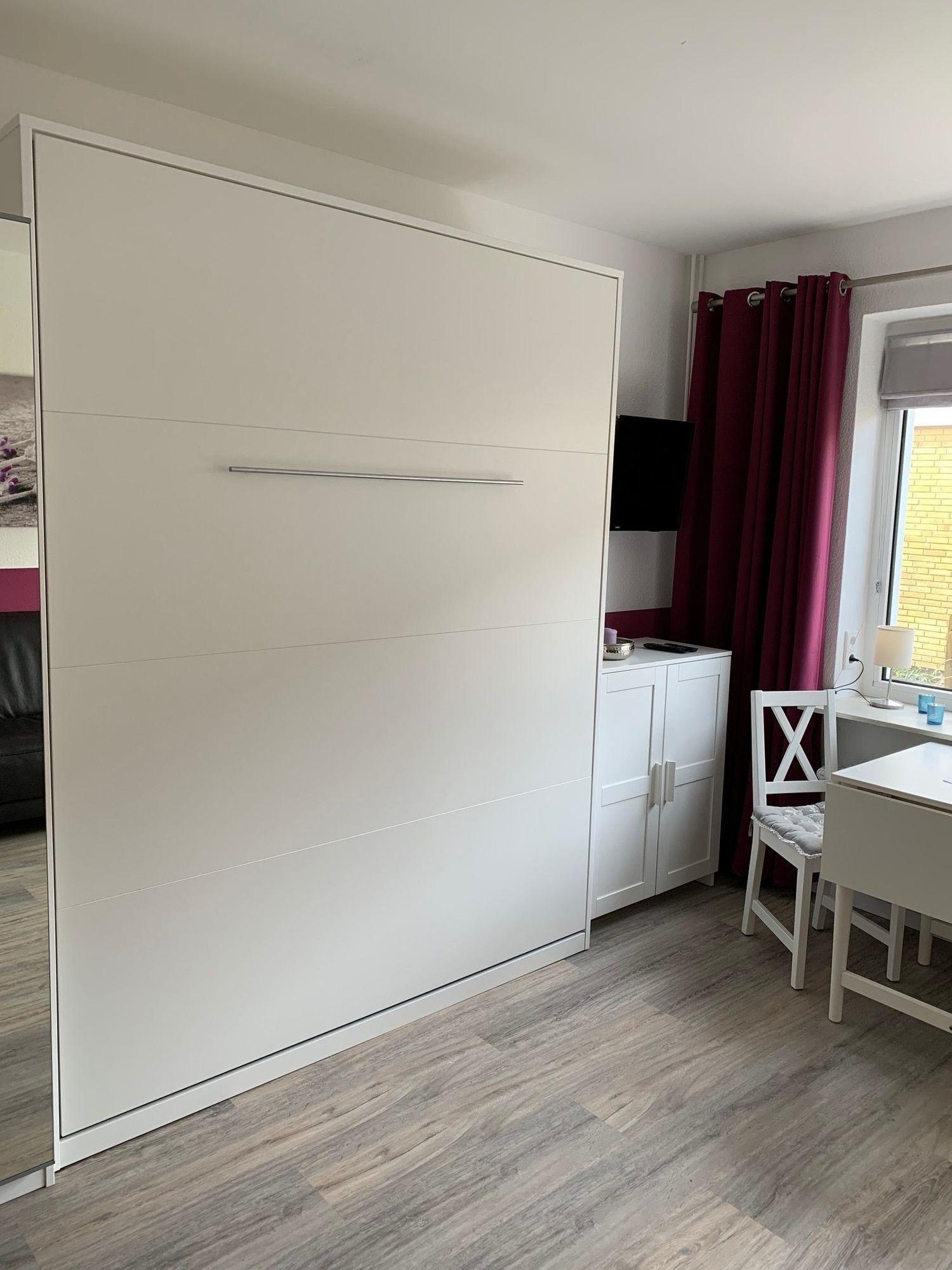 Das ca. 21 m² große 1 Zimmer-Apartment liegt im EG unseres Hauses und verfügt über einen Wohn- / Schlafraum mit vollständig ausgestatteter Küchenzeile, Schrankbett (160x200) Duschbad und Terrasse.