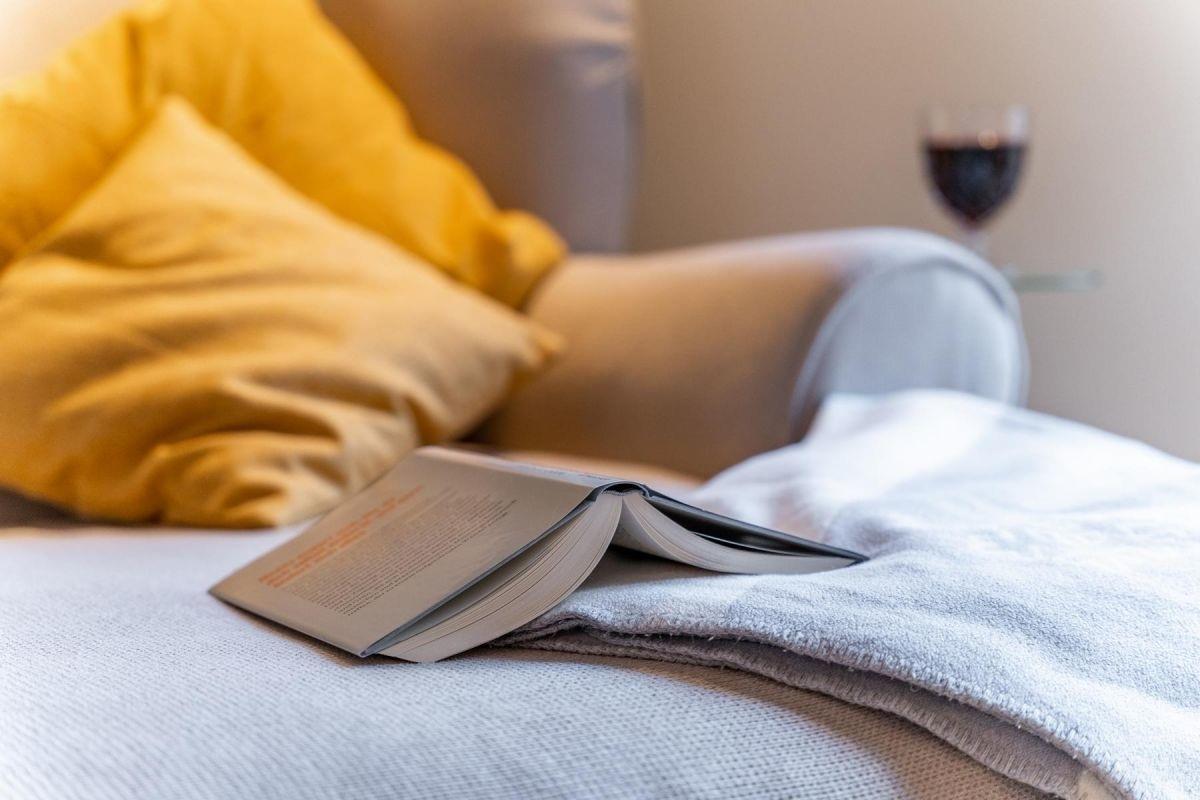 Im unteren Bereich befindet sich ein großes Schlafzimmer mit Boxspringbett für euren erholsamen Schlaf. Das Badezimmer mit begehbarer Dusche findet ihr direkt nebenan. Um gemeinsam zu kochen, zu spielen oder zu schnacken trefft ihr euch im großzügigen Wohn- und Essbereich. In der Lounge oder im Strandkorb genießt ihr den Blick auf den Sonnenuntergang.