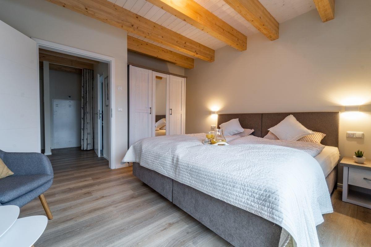 Durch die Großzügigkeit der Räume, die Breite der Türen, die bodentiefe Dusche oder auch den Stufenlosen Eingang können hier auch Gäste mit einem körperlichem Handicap einen schönen Urlaub verbringen.