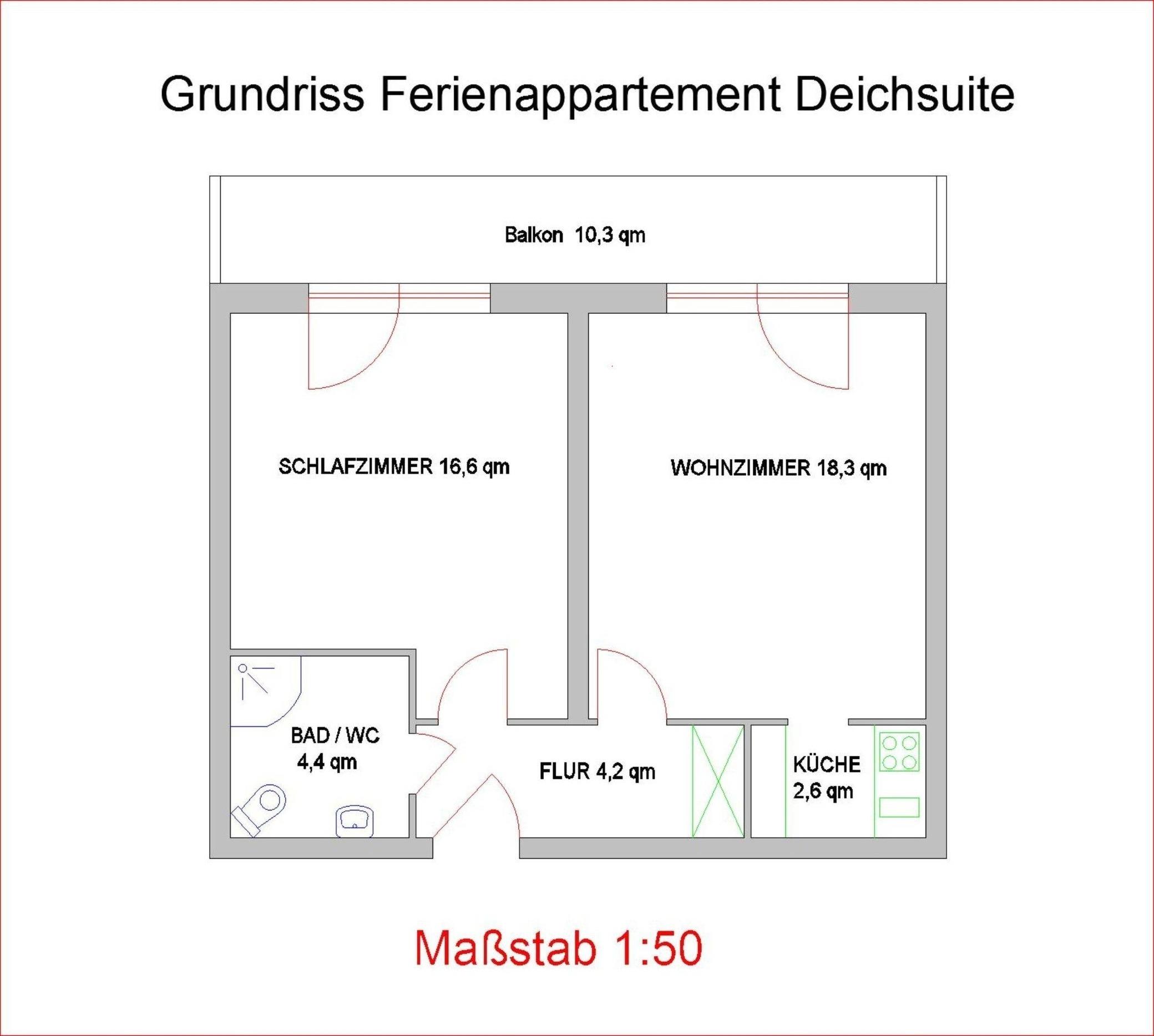 Das Ferienappartement "Deichsuite", ist ein mit viel Liebe zum Detail komplett neuwertig ausgestattetes - Zwei-Zimmer-Appartment (Nichtraucher) mit schönem großen Balkon. Die Wohnung bietet auf 47 qm alles, was man zur Erholung benötig - vor allem Ruhe:)
