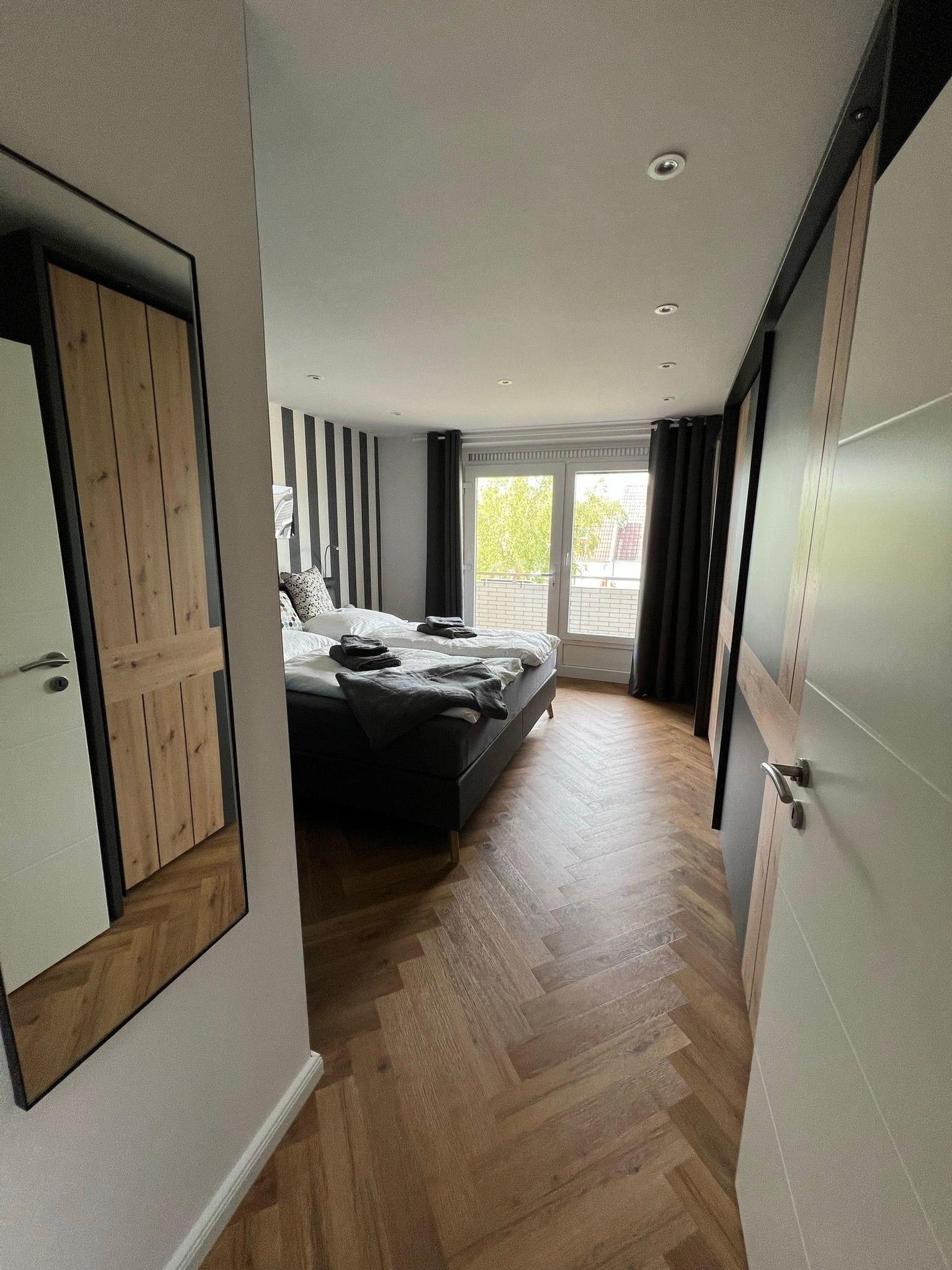 Das großzügige Schlafzimmer wurde versehen mit einem Kingsize-Boxspringbett (200x200cm) und einem Kleiderschrank mit Schiebetüren und viel Platz für Ihr Gepäck. Alles ebenfalls neu renoviert und eingerichtet.