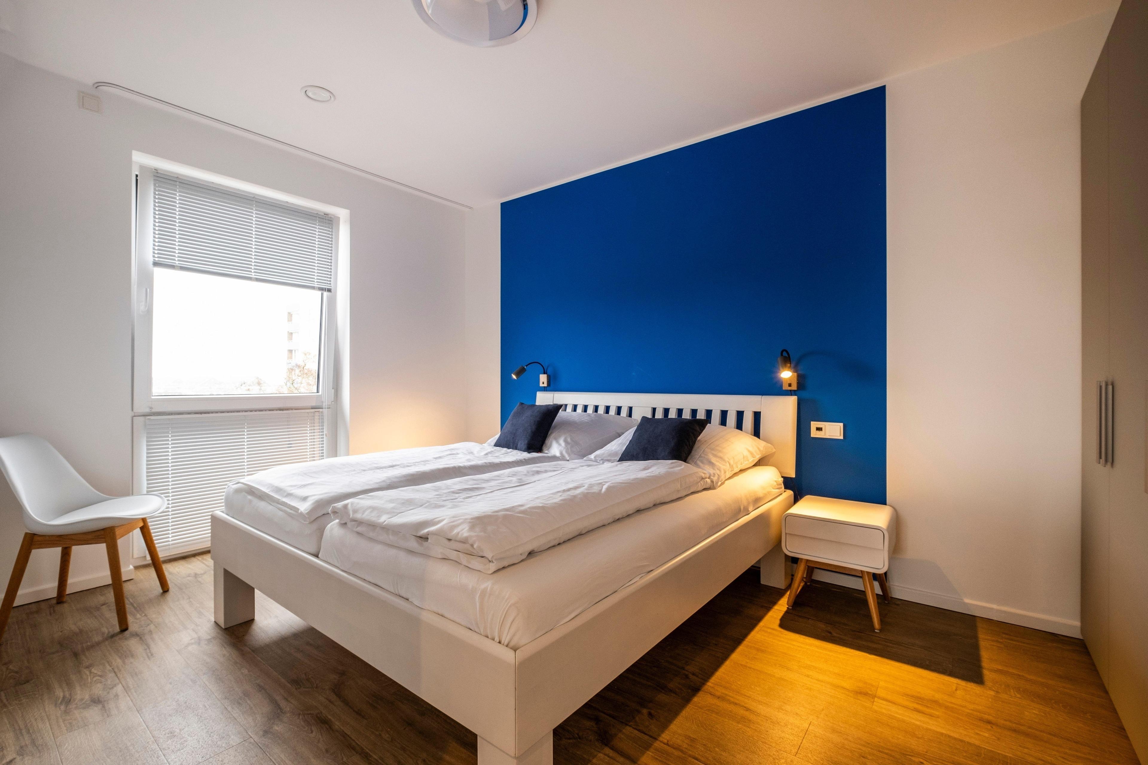 Das Appartement 4.1 ist ein Penthouse-Appartement mit einer großen Dachterrasse und wundervollem Blick! Es befindet sich im IV. Obergeschoss (Dachgeschoss) und ist elegant und modern eingerichtet. Das erste Schlafzimmer ist mit Doppelbett (180 x 200 cm) und das zweite Schlafzimmer mit Doppelbett in der Größe 140 x 200 cm ausgestattet. Jalousien sorgen für eine behagliche Atmosphäre.