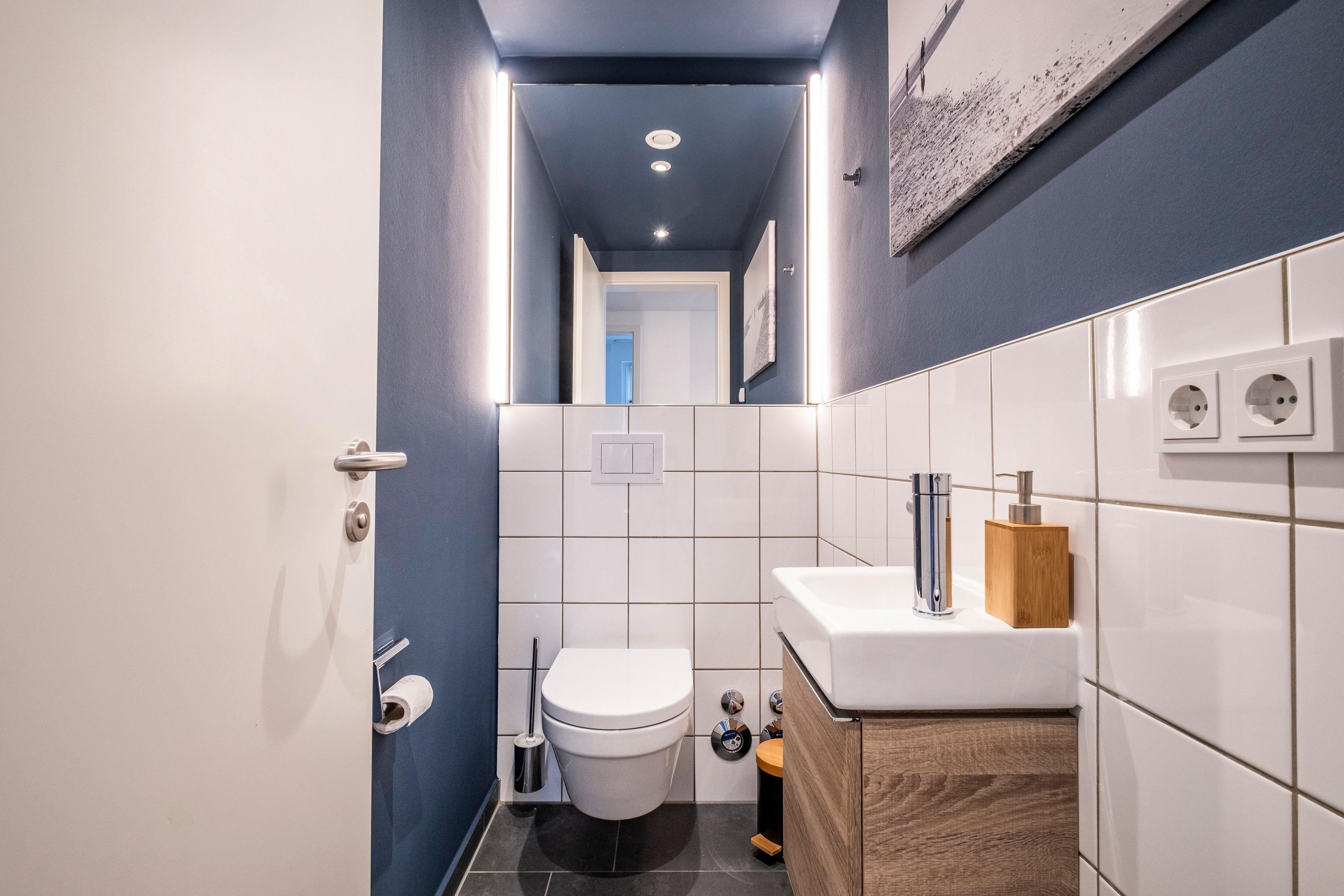 Sanitär: Duschbad, Handtuchheizung, Haar-Föhn, Gäste-WC
