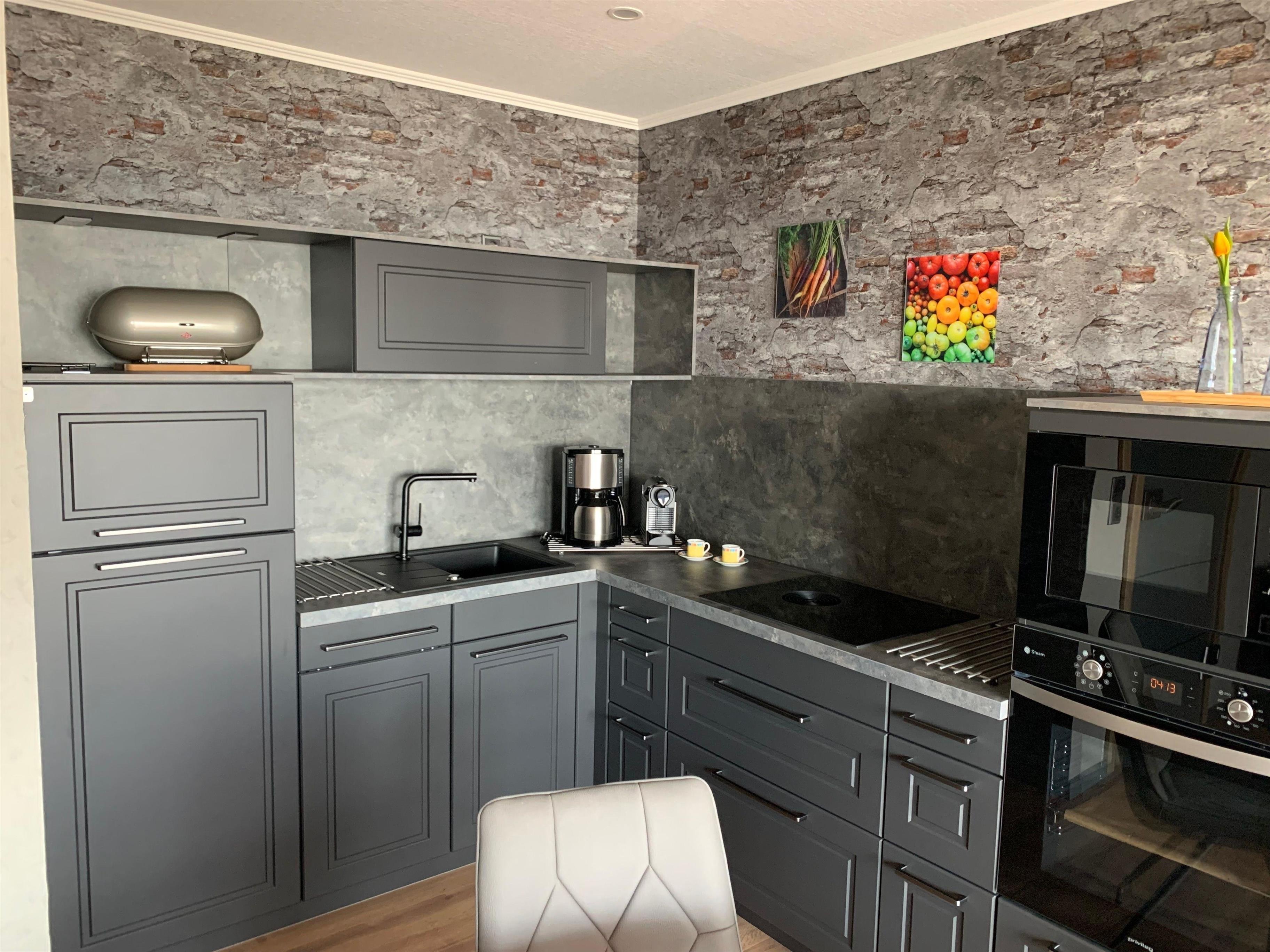 Die Wohnungn besteht aus einem Wohn/Küchenbereich, einen Schlafzimmer im Obergeschoß und einen neuen Duschbad. Die Wohnung wurde nach der Renovierung sehr hochwertig neu möbiliert und ausgestattet. Eine Einbauküche mit Kühl-Gefrierkombination, Geschirrspüler, Mikrowelle und Bora Cerankochfeld mit dazueghörigen Backofen. Selbstverständlich gehört zur Aiusstattung ein komplettes Geschirrpaket, Toaster, Wasserkocher, Kaffeemaschine, Nespressomaschine mit dazugehörigen Aufschäumer von Nespresso. Essplatz, Ledersofa und Conform Timeout Relaxsessel und Hocker.