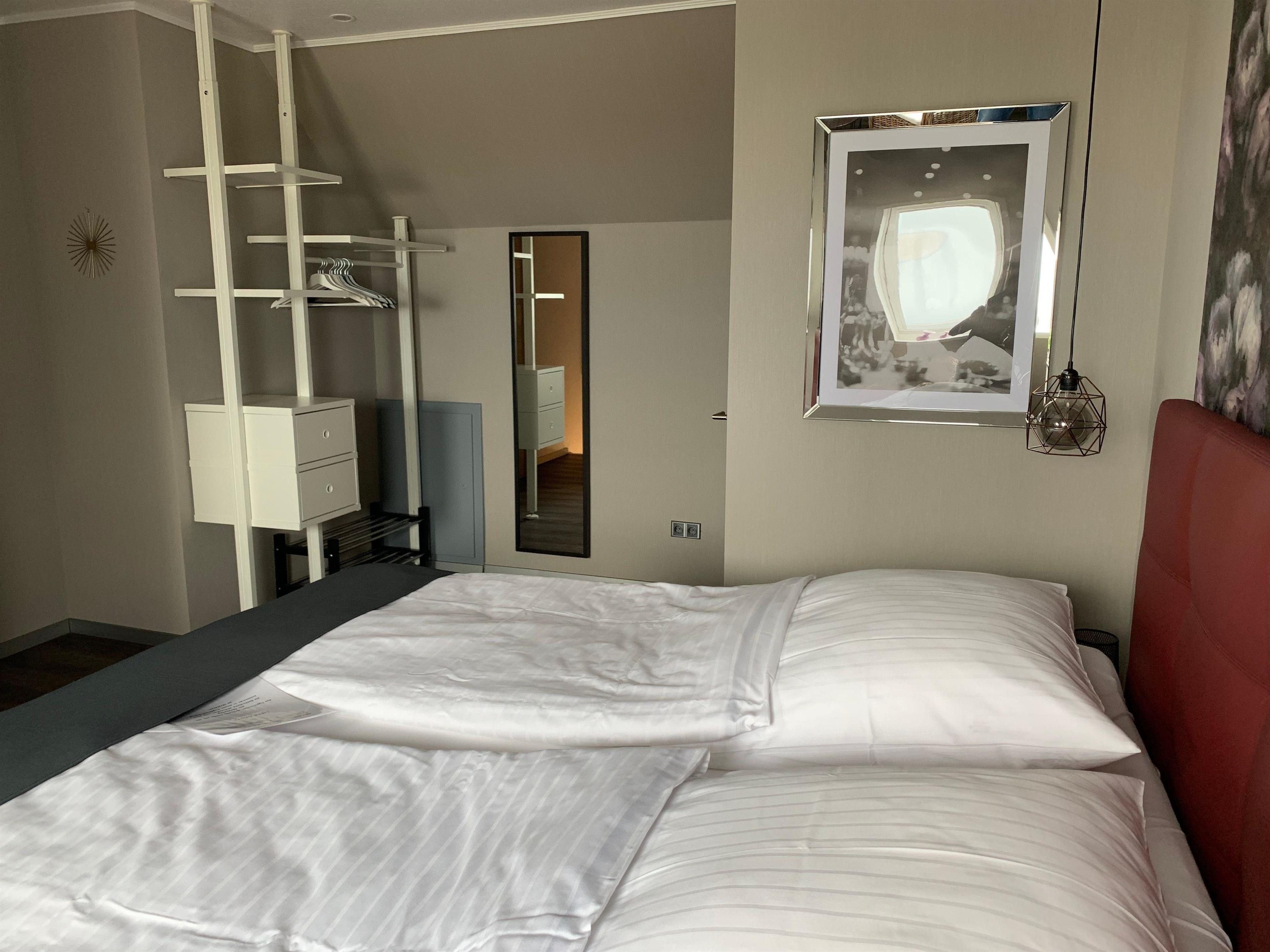 Das Schlafzimmer erreichen Sie über eine Treppe aus dem Wohnbereich im Obergeschoß. Hier finden Sie ein sehr hochwertiges Leder Boxspringbett für einen geruhsamen Schlaf. Vom Schlafzimmer ausgehend gehts in ein zweites separates WC. Zur Ausstattung gehören 2 Smart TV. DieWohnung lässt keine Wünsche offen.
