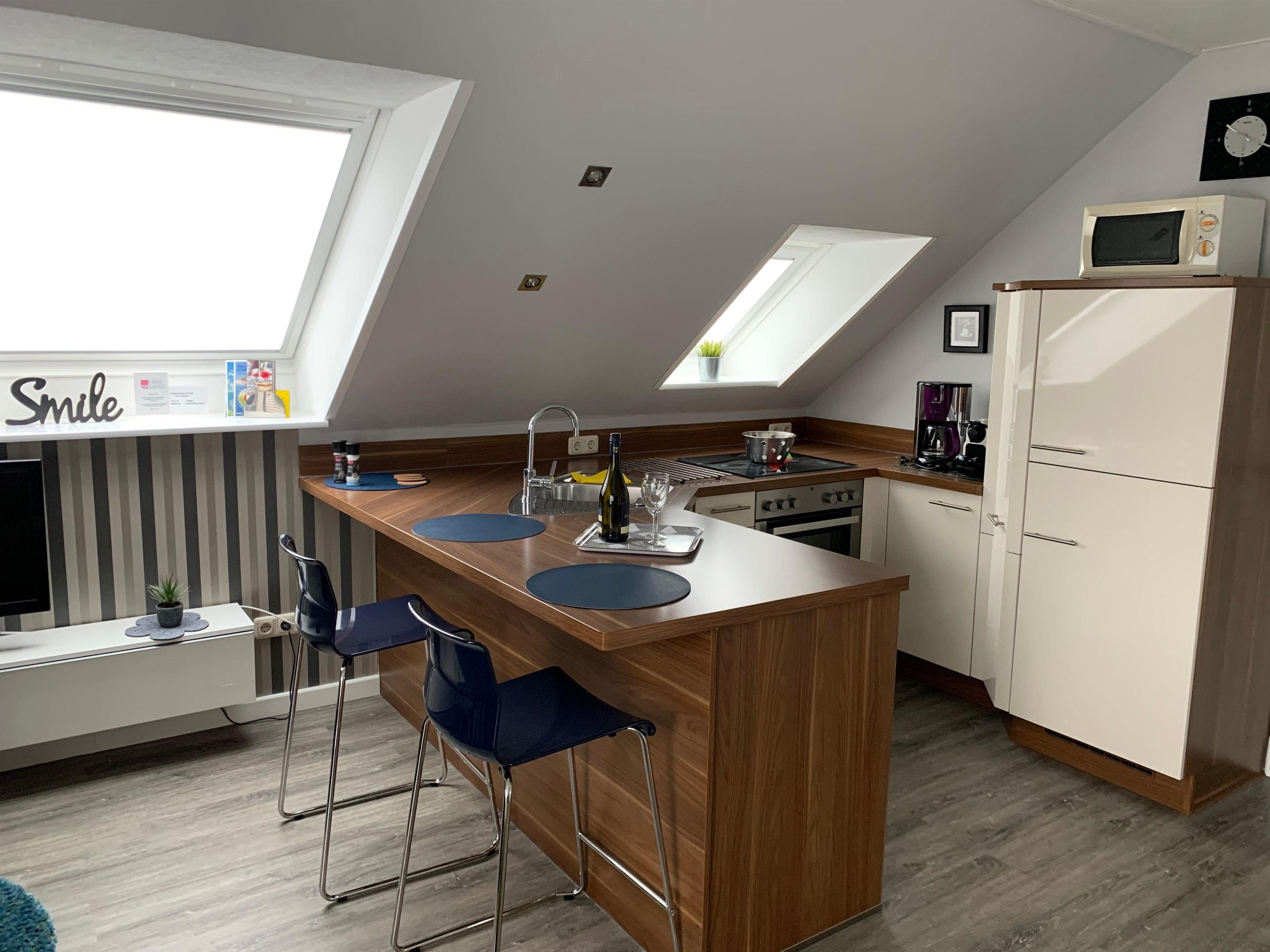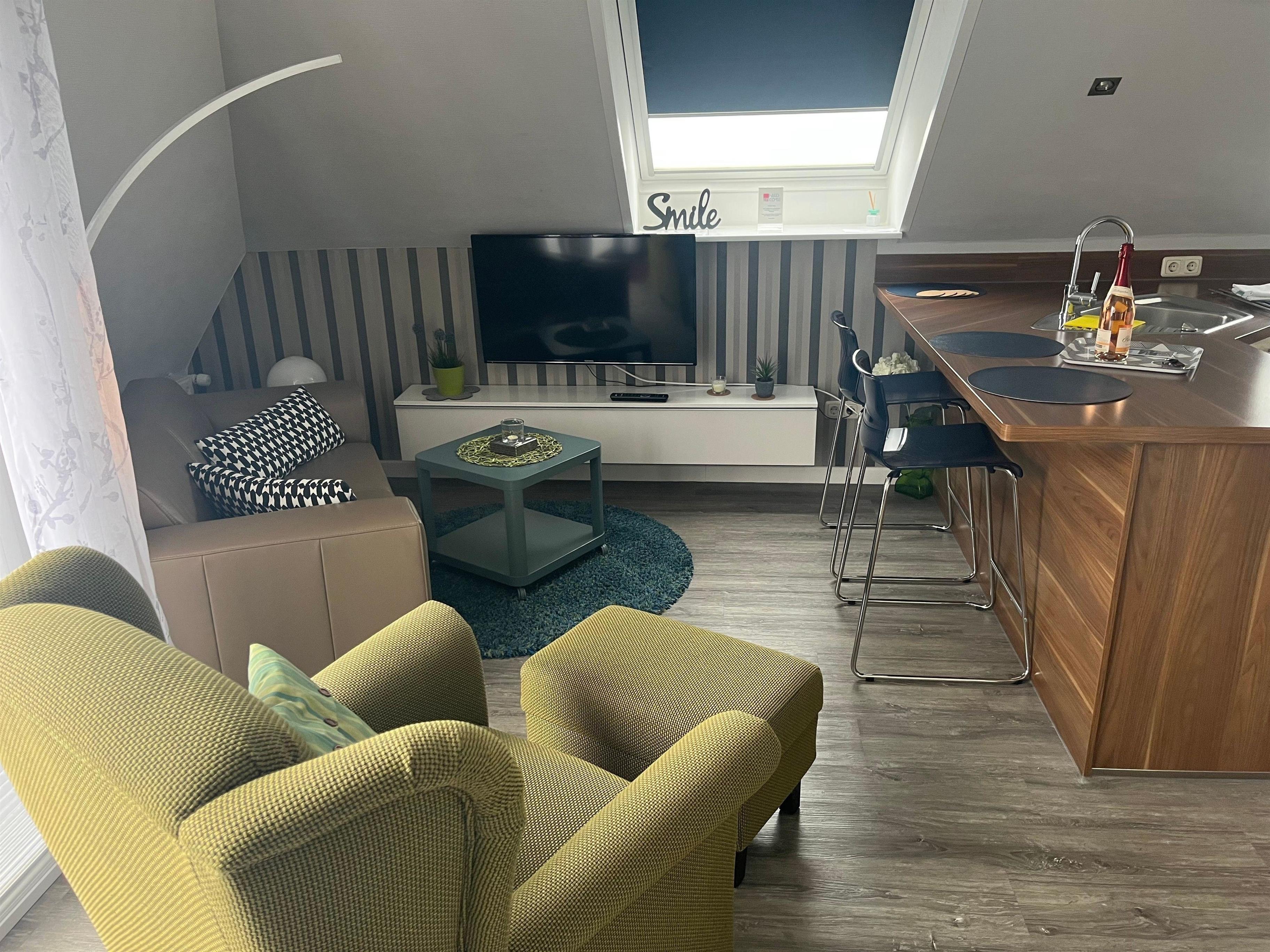 Flat Sat-TV und voll ausgestatteter Komfortküche.