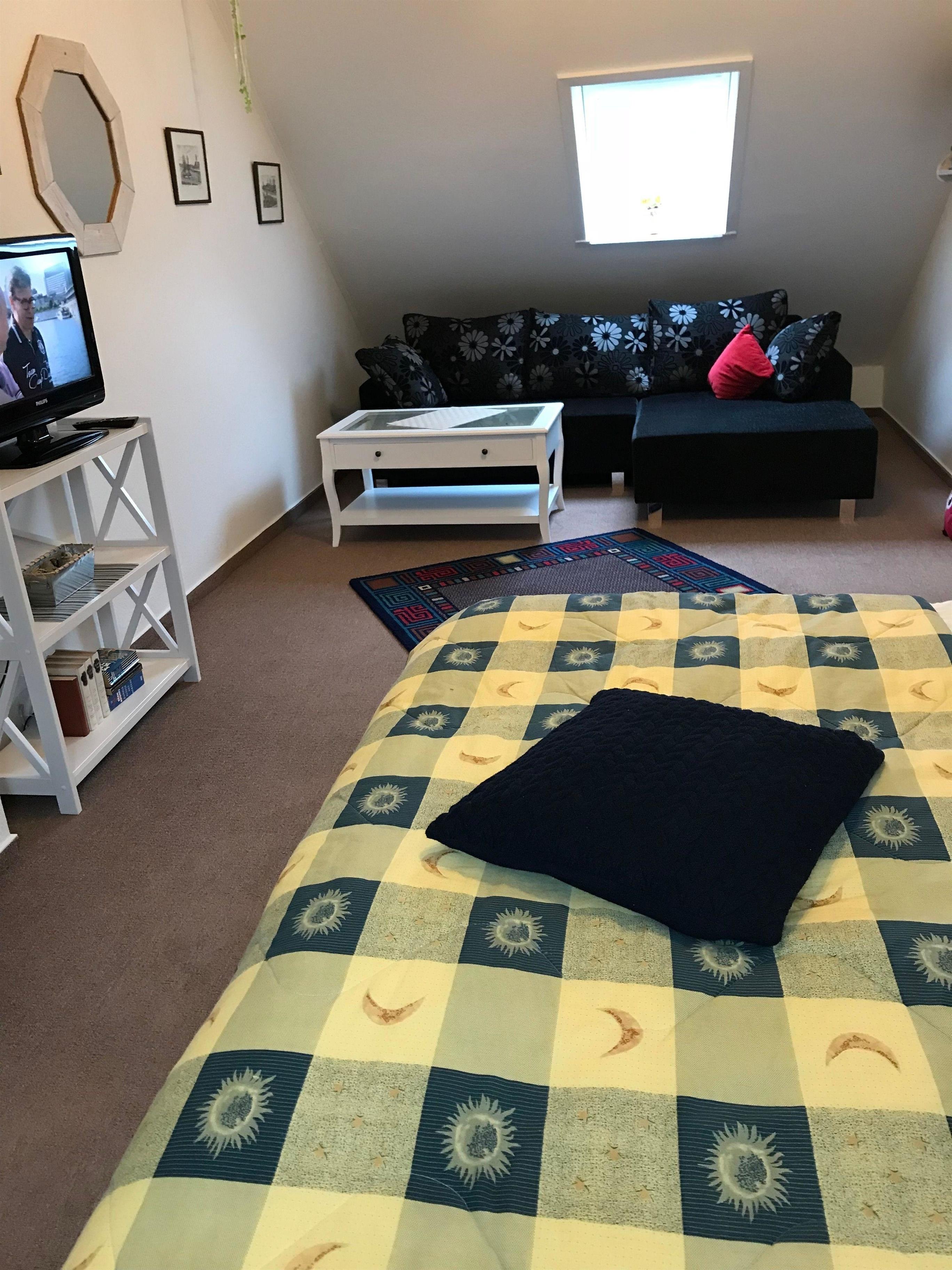 In den zwei Schlafzimmern stehen Ihnen ein Doppelbett sowie ein Kleiderschrank zur Verfügung. Oben ist ein weiterer Fernseher vorhanden.