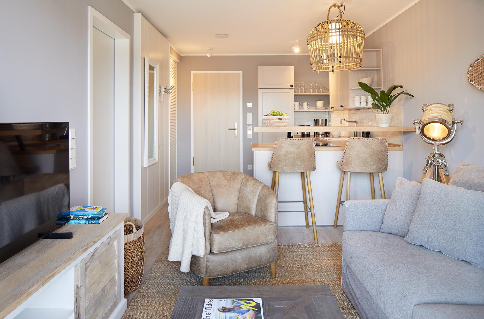 Unsere Comfort One Bedroom -Apartments sind hell und freundlich eingerichtet. Der Wohnbereich mit angrenzender Küchenzeile lädt zum Entspannen und Wohlfühlen ein. Ob auf dem gemütlichen Sofa, vor dem Flachbild-TV oder am Esstisch bei einer Tasse Tee oder Kaffee & Relaxing-Areas gibt es viele.