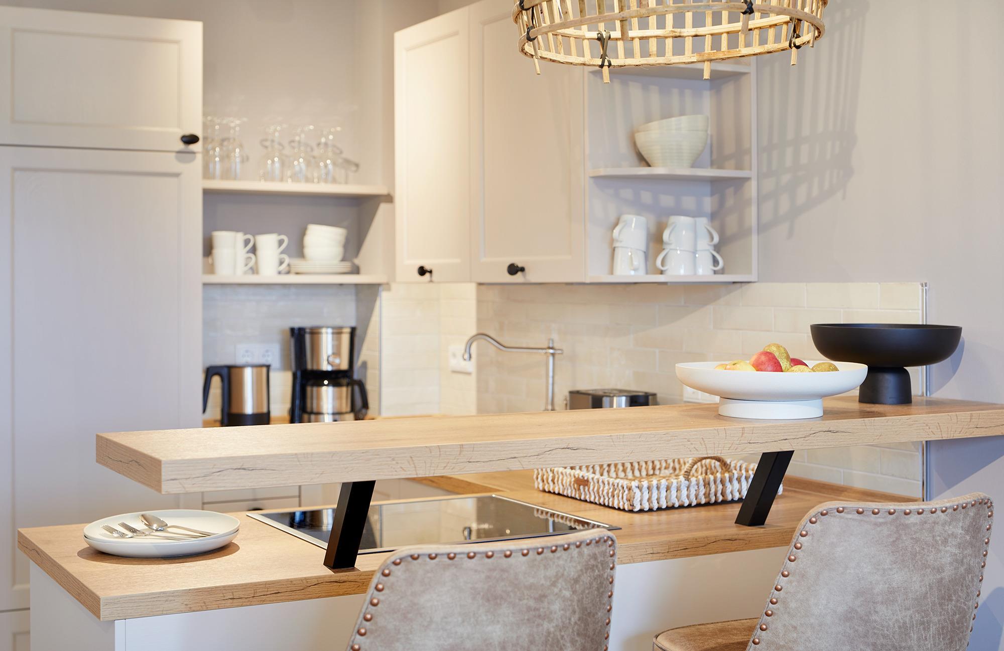 Die Apartmentküche ist vollausgestattet und bietet neben Herd, Ofen, Wasserkocher, Toaster und Filterkaffeemaschine alles was ihr für den gemeinsamen Koch-Abend benötigt. Keine Lust zum Kochen?! Gar kein Problem!