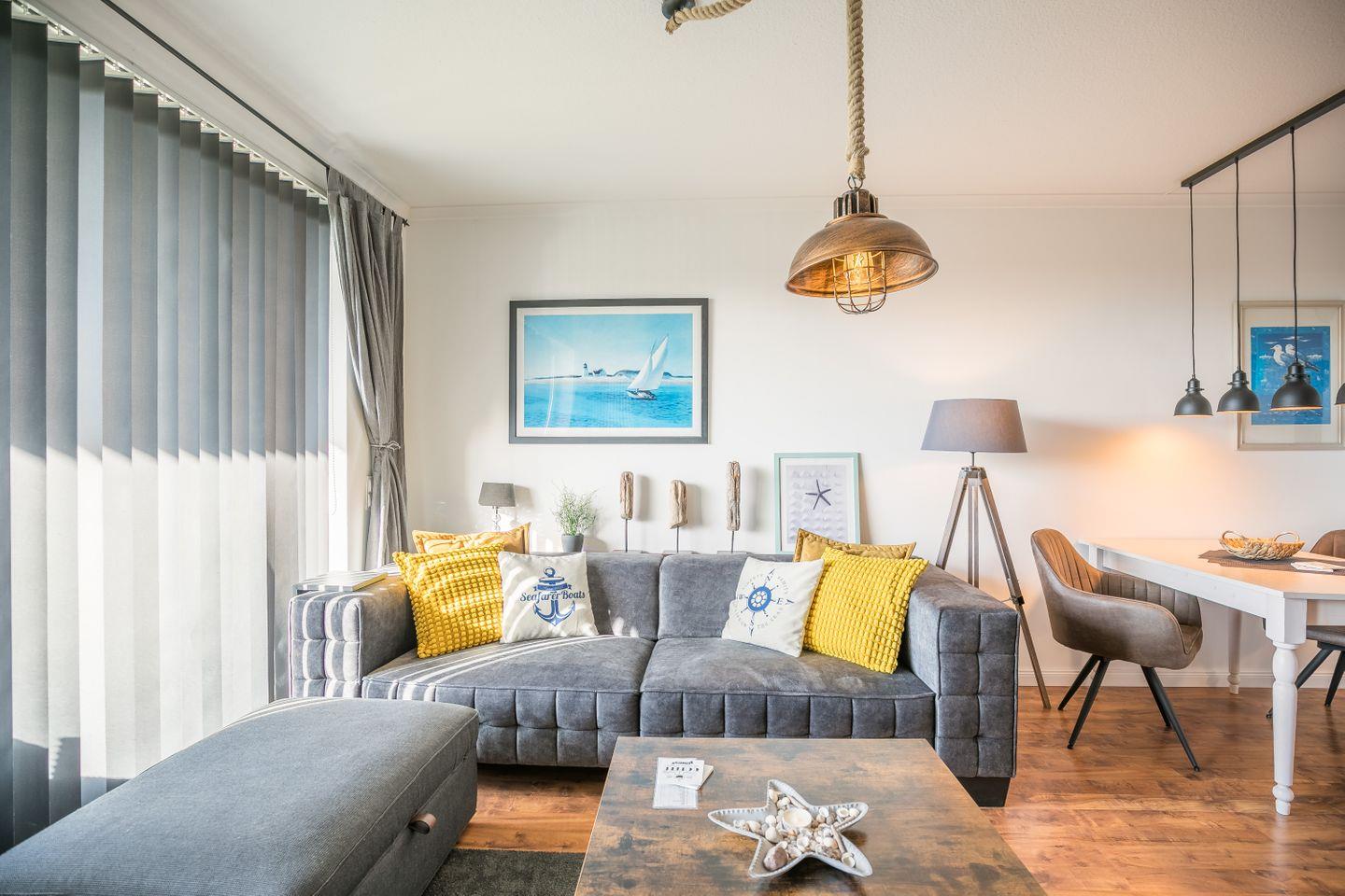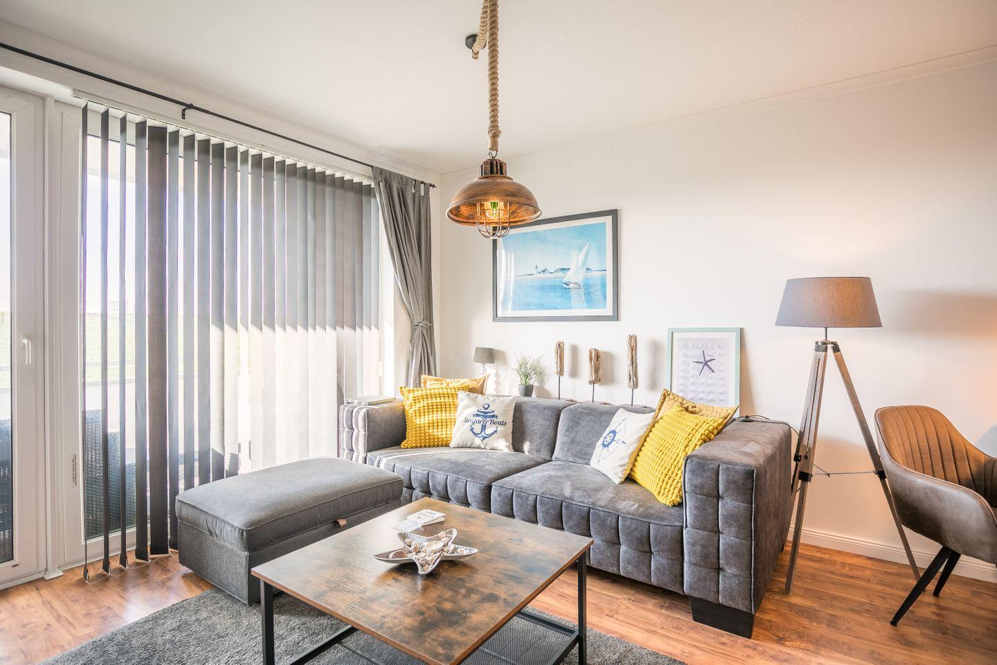 Moderne Ferienwohnung in Büsum, 200 m vom Meer entfernt, mit Balkon, WLAN und eigenem Wellnessbereich.