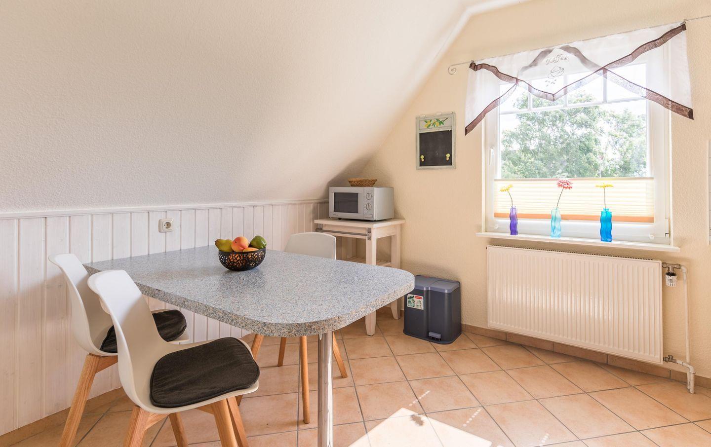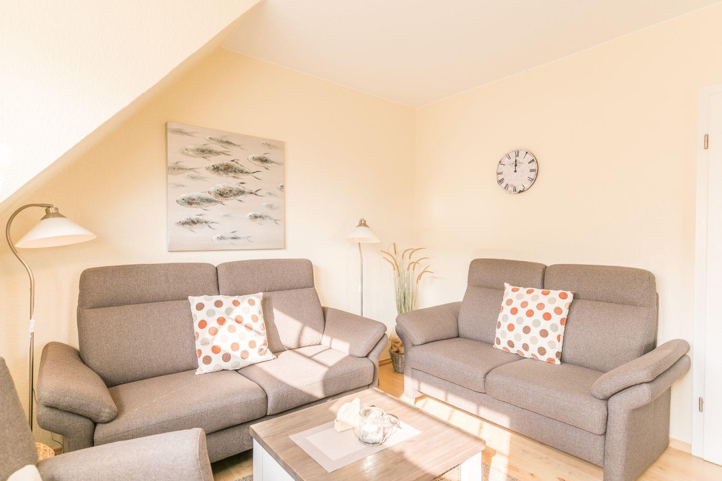 Lassen Sie sich vom Ambiente der Ferienwohnung bezaubern! Ein Traumurlaub ist praktisch garantiert, denn Sie schlafen und träumen in zwei liebevoll eingerichteten Schlafzimmern, duschen und pflegen sich in einem lichten und geräumigen Bad, nehmen Ihr Frühstück und die Mahlzeiten in einer hellen und komfortablen Küche ein. Sie entspannen, oder grillen auf der großen Dachterrasse. Das im nordischen Stil eingerichtete Wohnzimmer ist so gemütlich, dass Sie Ihren Urlaub verlängern möchten.....