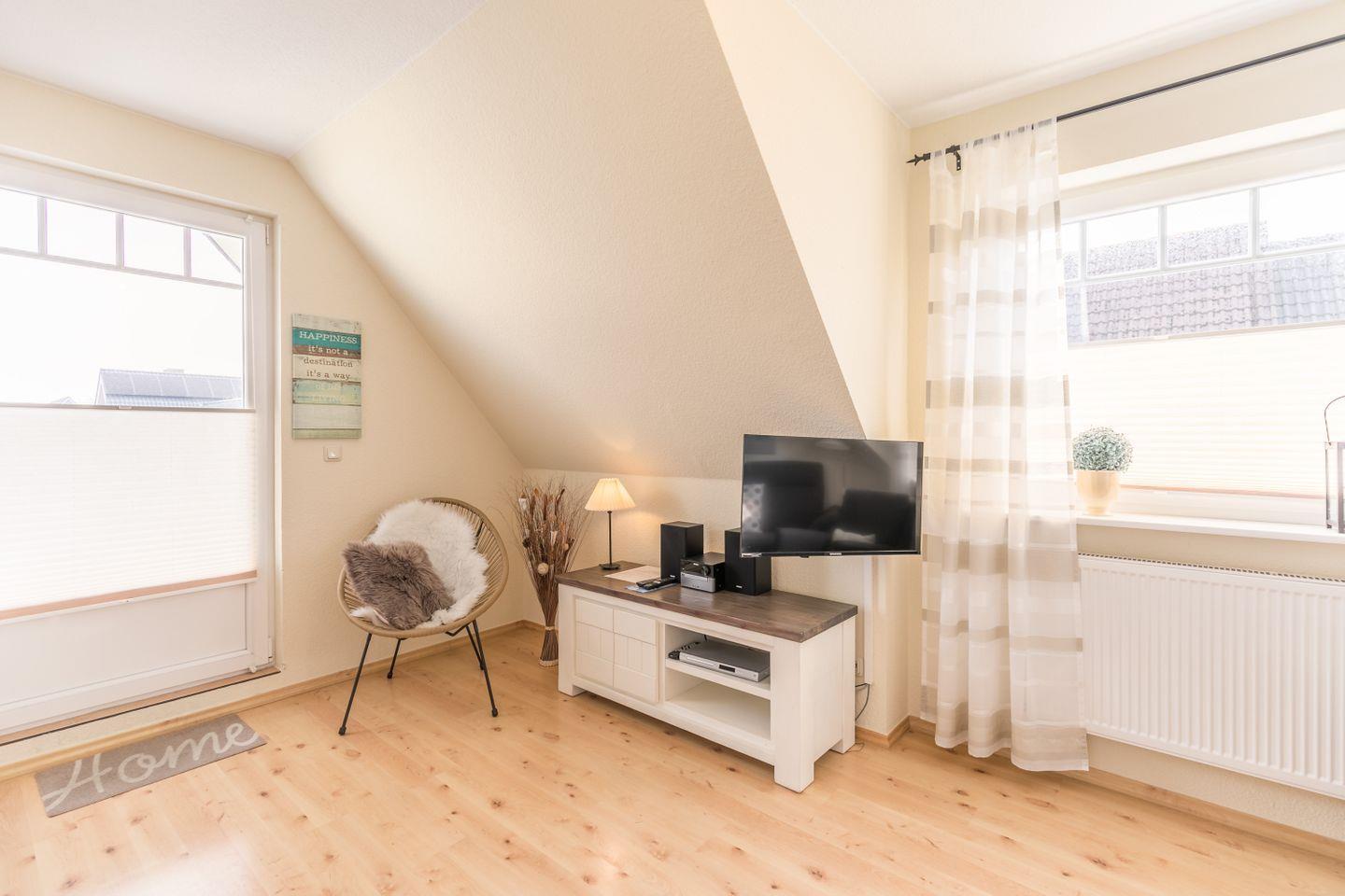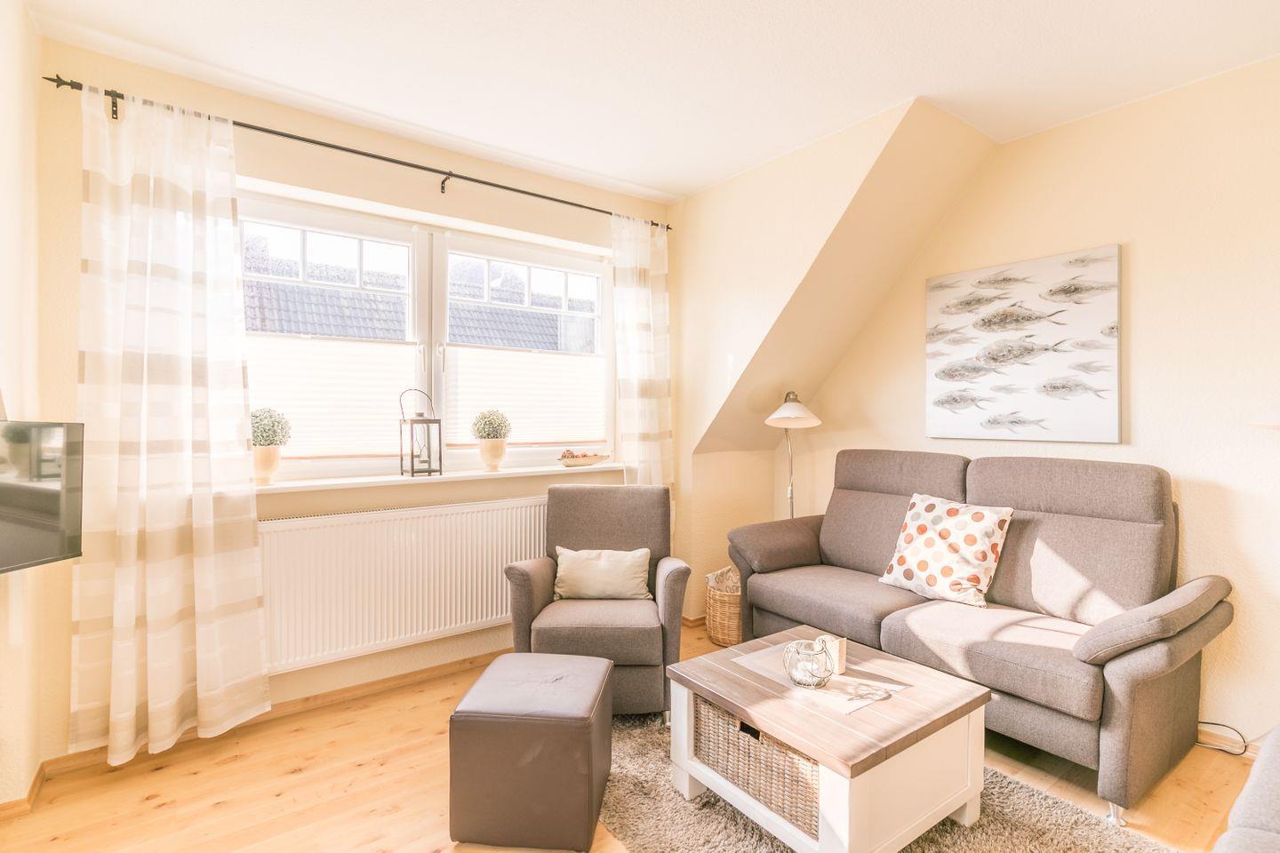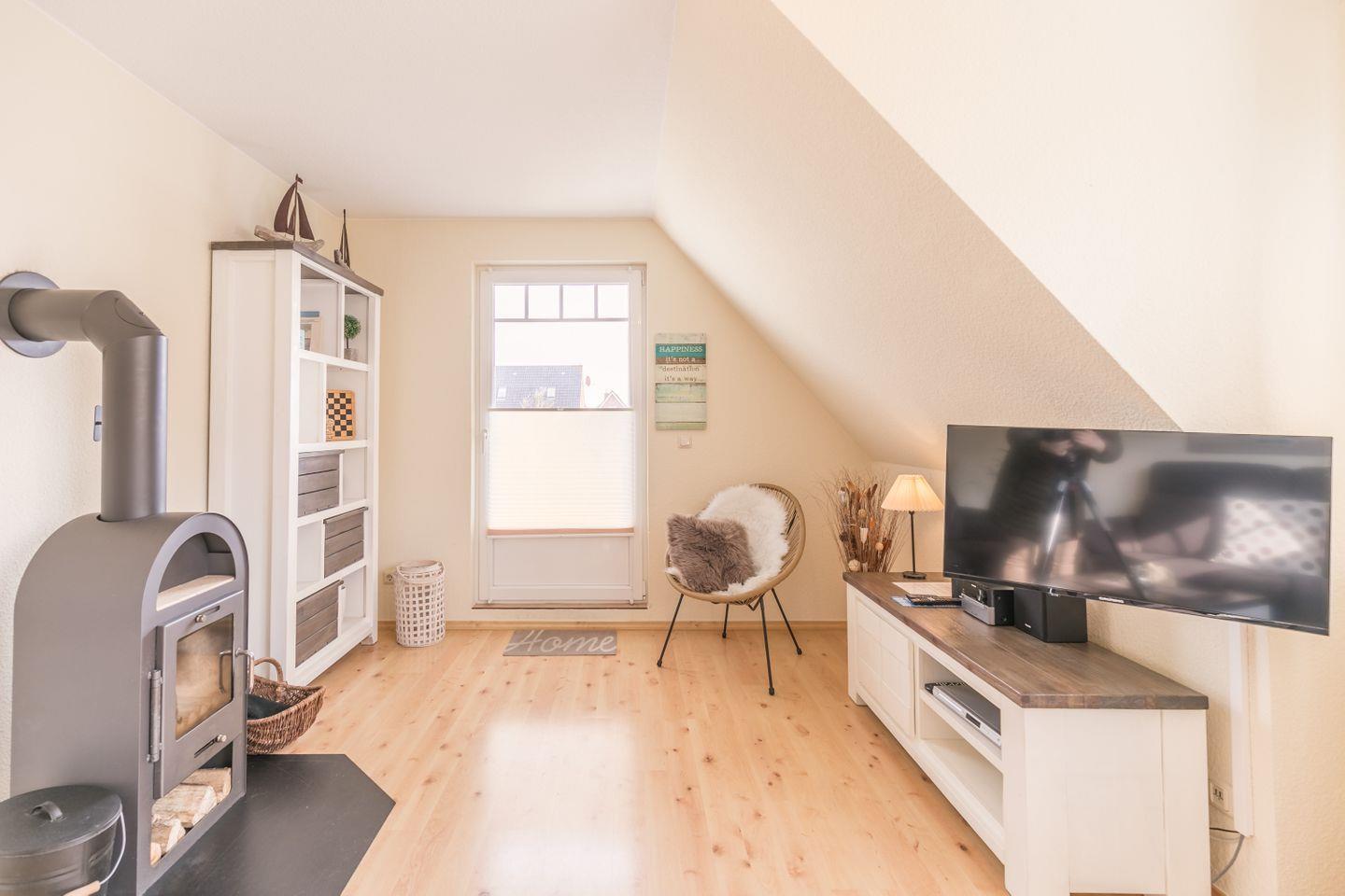 Gemütliche Ferienwohnung Haus Hinnerk 2 in ruhiger Lage nahe Meer und Familienlagune mit Kamin und großer Dachterrasse.