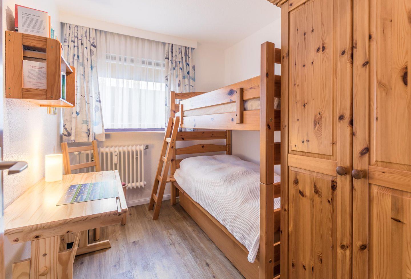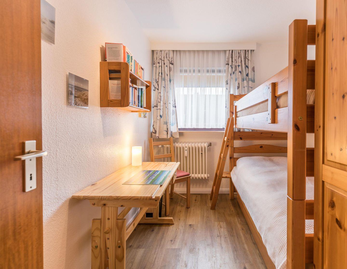 Etagenbett, Schreibtisch, Bücher, Spiele
