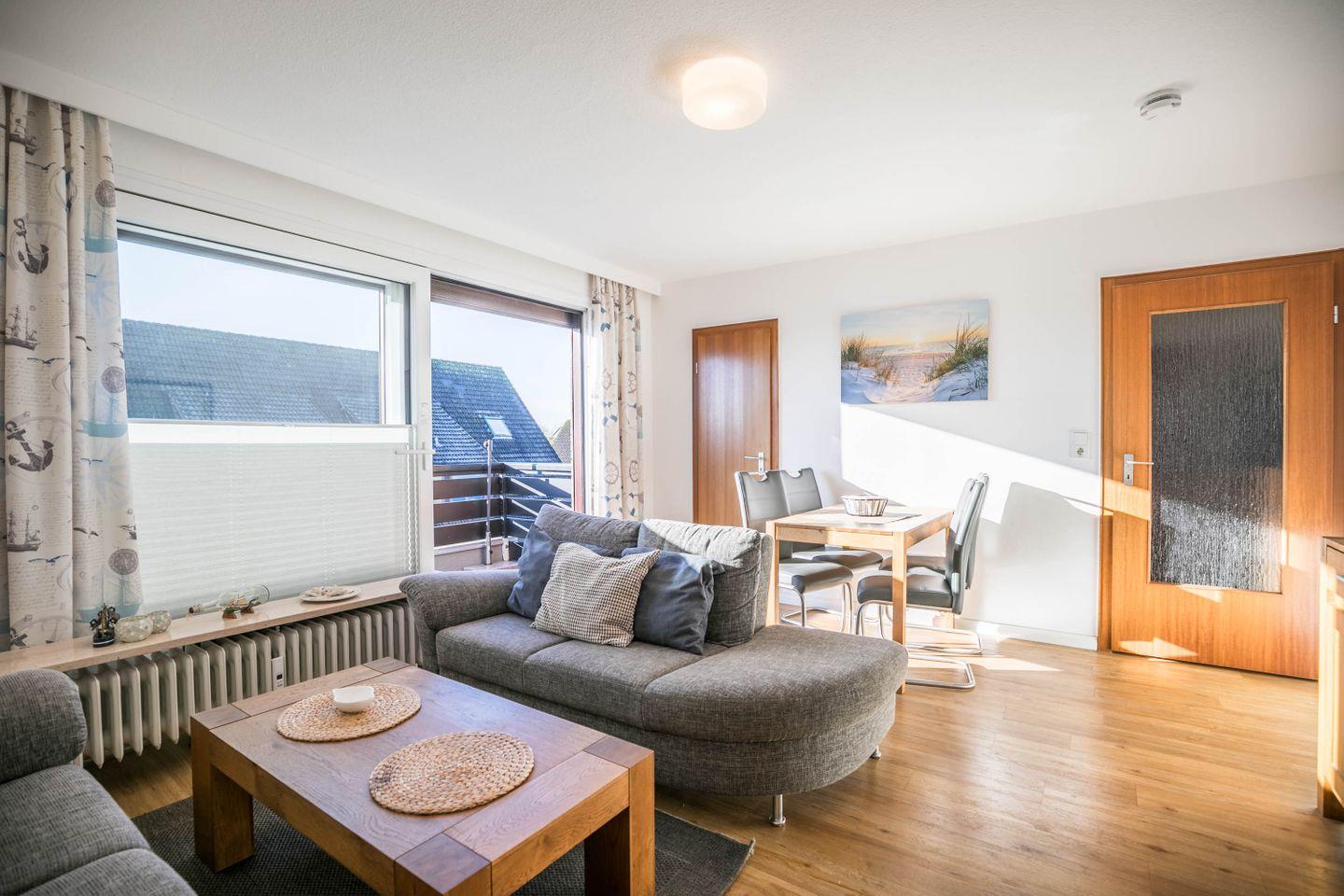 Gemütliche Ferienwohnung Julia im Haus Neptun in Büsum, ideal für Familien, mit Balkon, Küche und nur 650 m zum Strand.