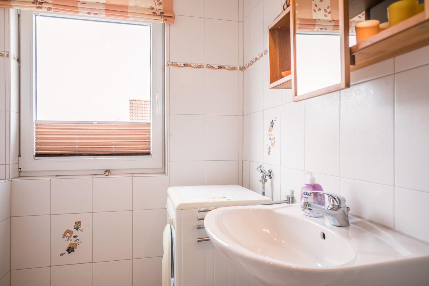 Dusche, Fenster, WC, Ablageflächen, Handtuchwärmer, Fußbodenheizung, Waschmaschine aus 2025