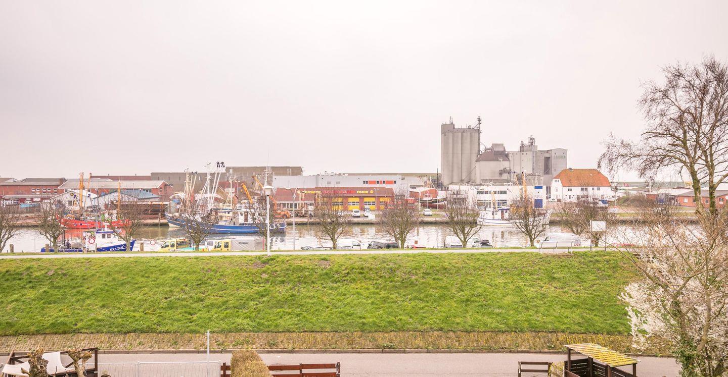 Genießen Sie den Blick über den Hafen! In unmittelbarer Umgebung laden Sie ein: der Strand und das Piratenmeer zum Baden, die Fußgängerzonen zum Shoppen und Flanieren und gemütliche Gaststätten zum Verweilen und Genießen!