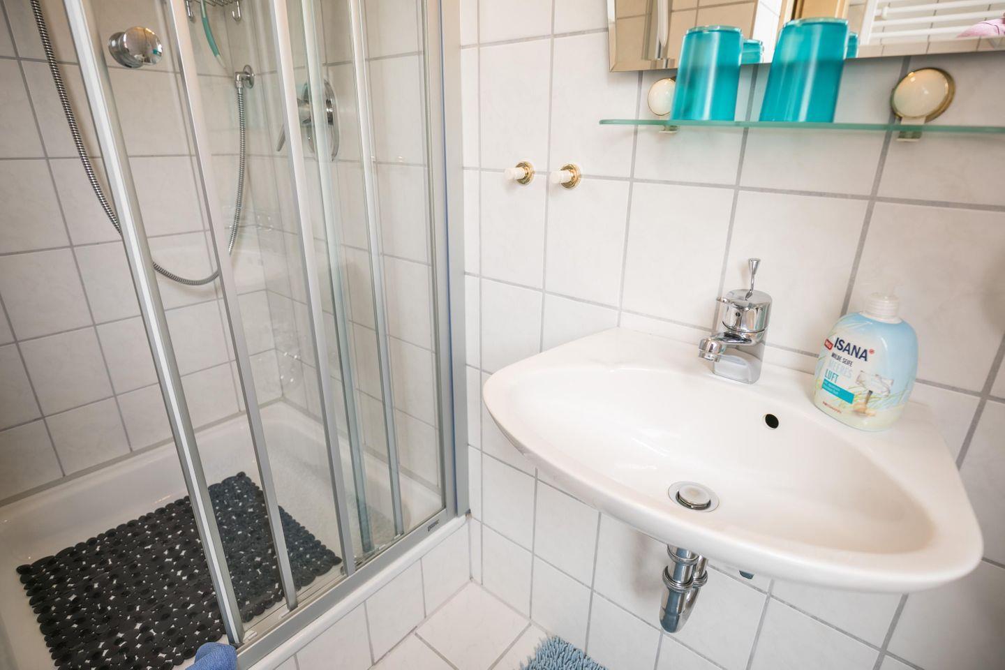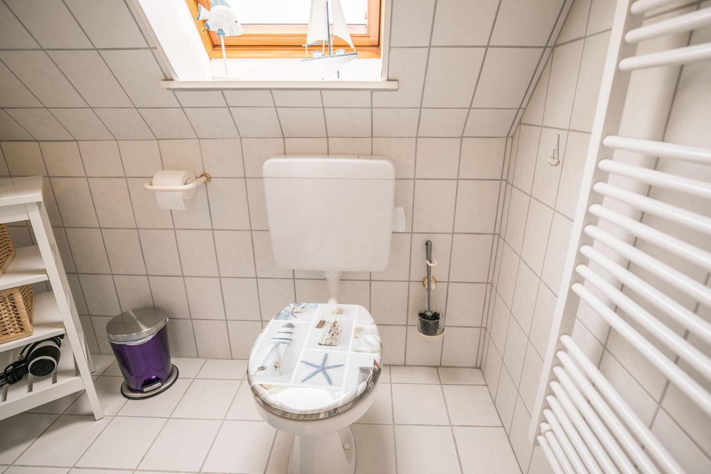 Bad: Duschbad, WC, Ablagen, Fön, Fenster