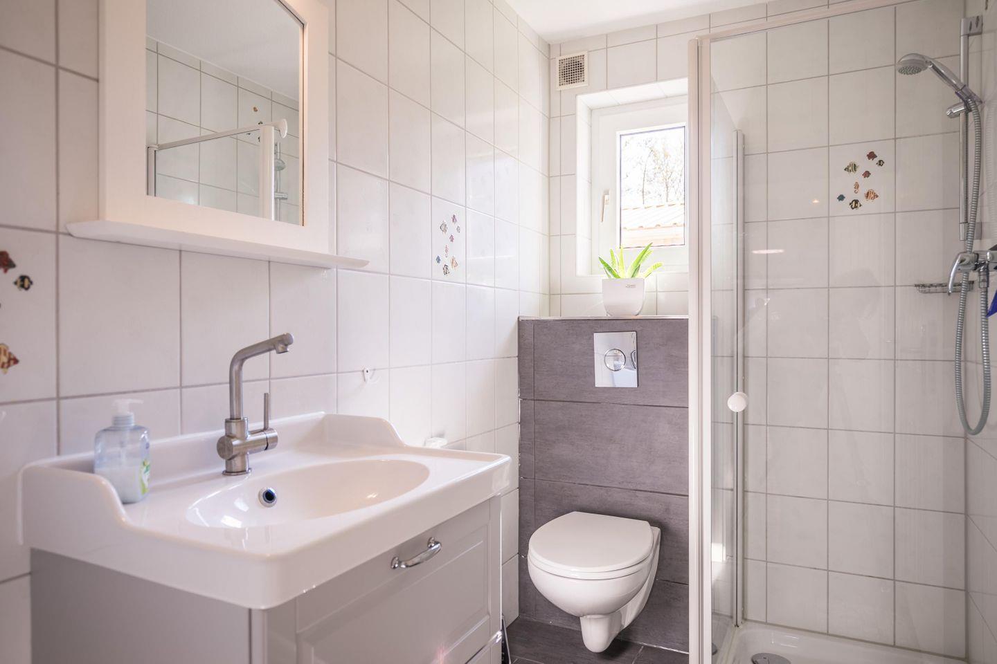 Erdgeschoß, Duschbad, Dusche bodengleich, WC, Waschtisch, Fön, Fenster