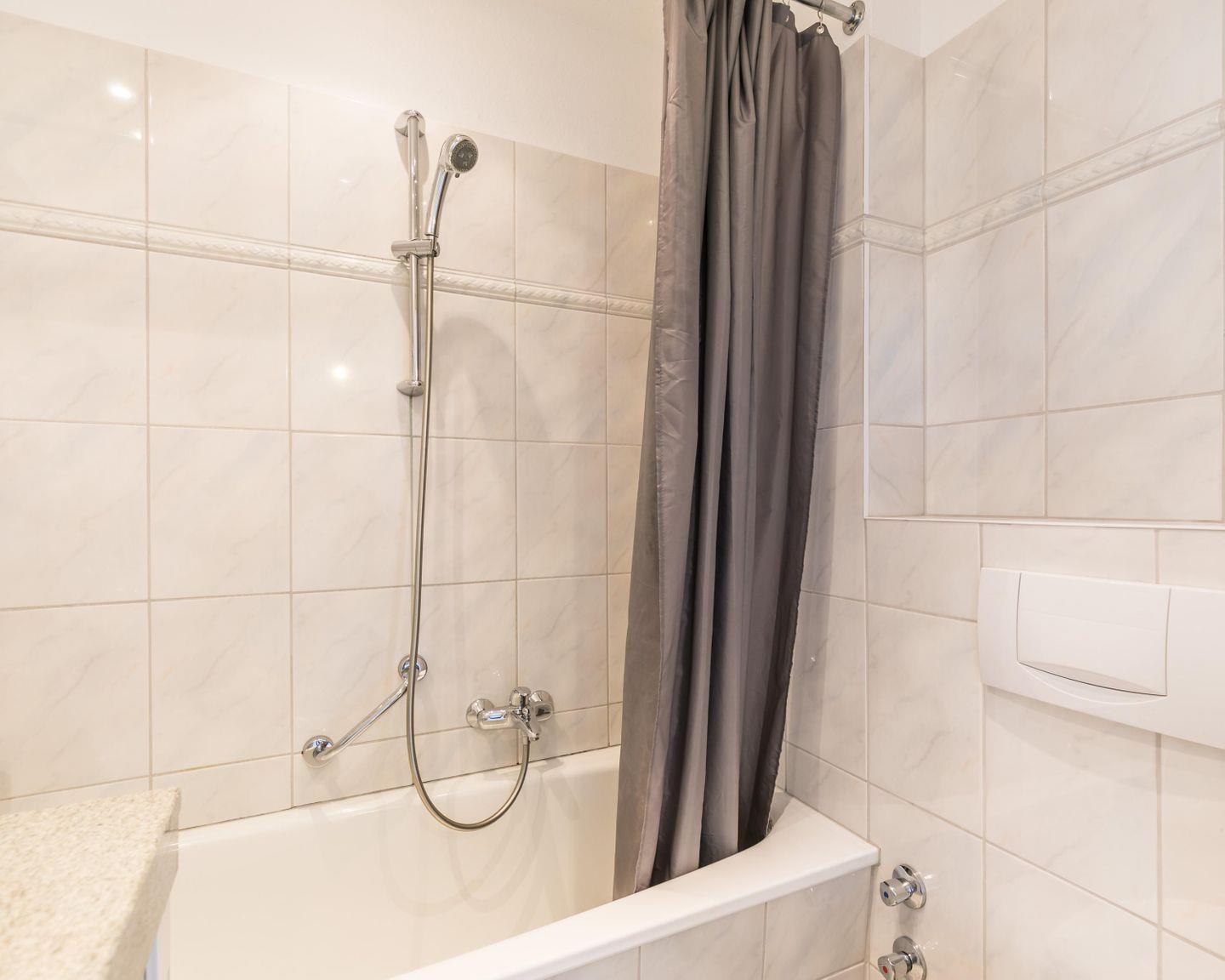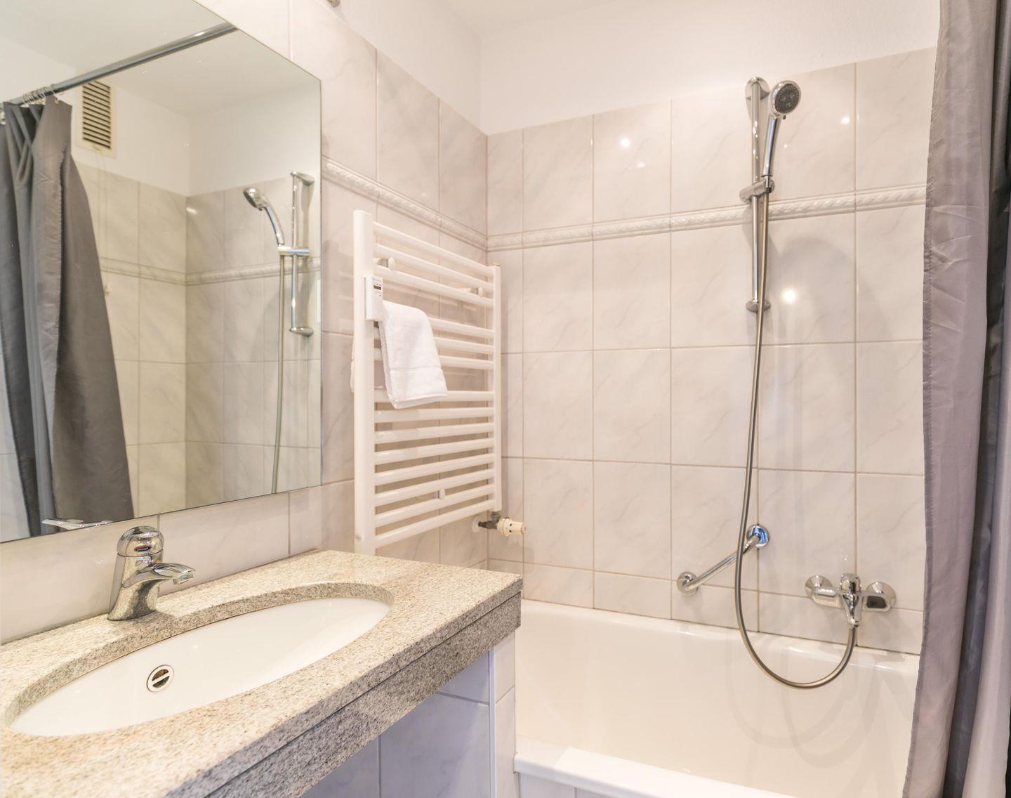 Badewanne mit Duschfunktion, WC, Handtuchwärmer, Waschtisch, Fön