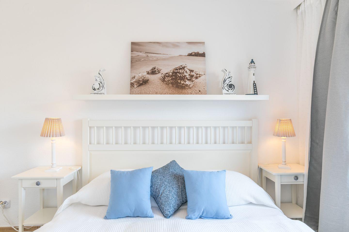 Doppelbett mit verstellbaren Lattenrosten, Einbauschrank, Plissee, Verdunkelungsvorhänge