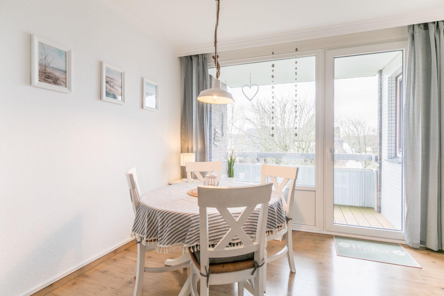 Die Ferienwohnung Nordseeperle in Büsum bietet modernen Komfort nur 300 m vom Strand entfernt mit Balkon und WLAN.