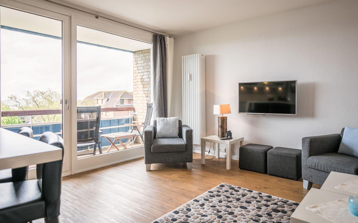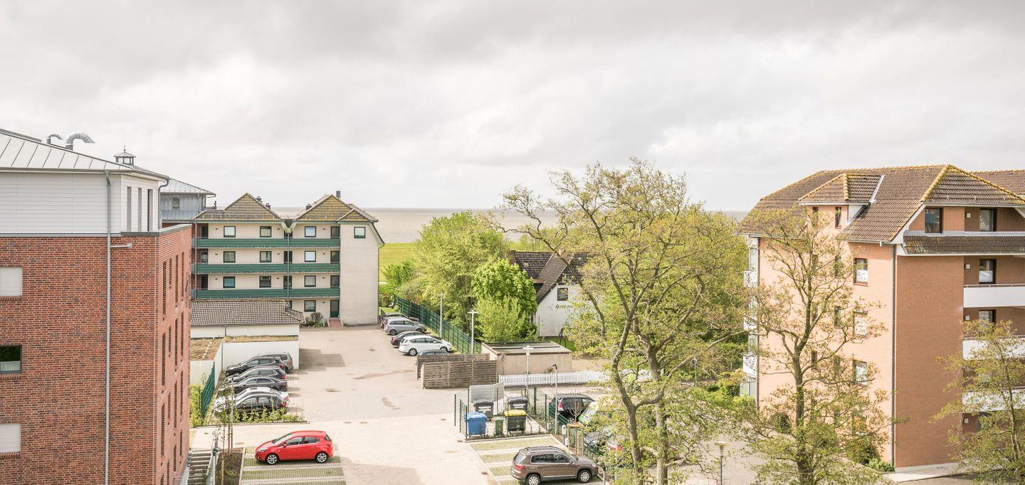 Moderne Ferienwohnung Haus Rainer in Büsum mit Balkon und eingeschränktem Meerblick, WLAN, Aufzug und Parkplatz inklusive.