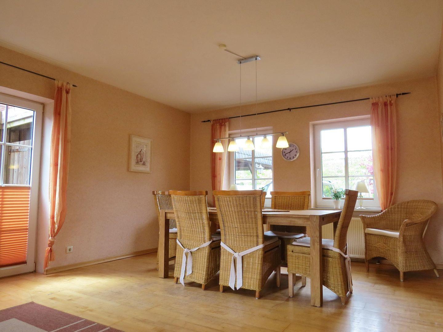 In der Fewo haben 6 Personen Platz am Esstisch, im Wohnzimmer und auf der Terrasse. Mit 2 Bädern und einem Gäste-WC ist "Lucy" optimal ausgestattet.