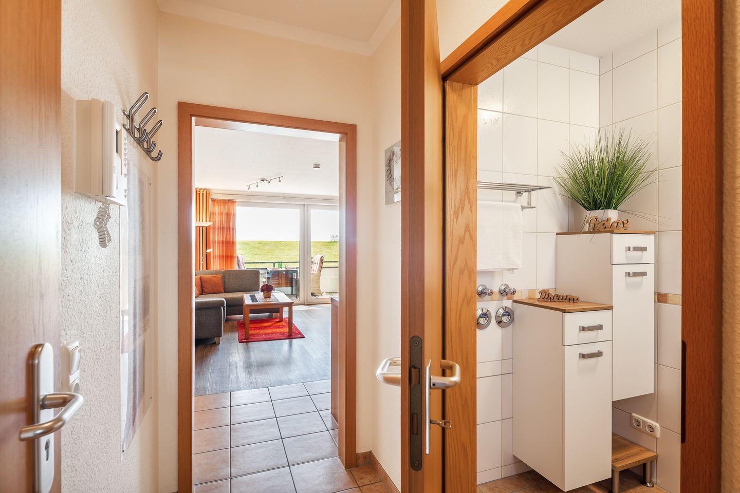 Diese Ferienwohnung liegt im ersten Stock, welchen Sie mit dem Fahrstuhl erreichen können.