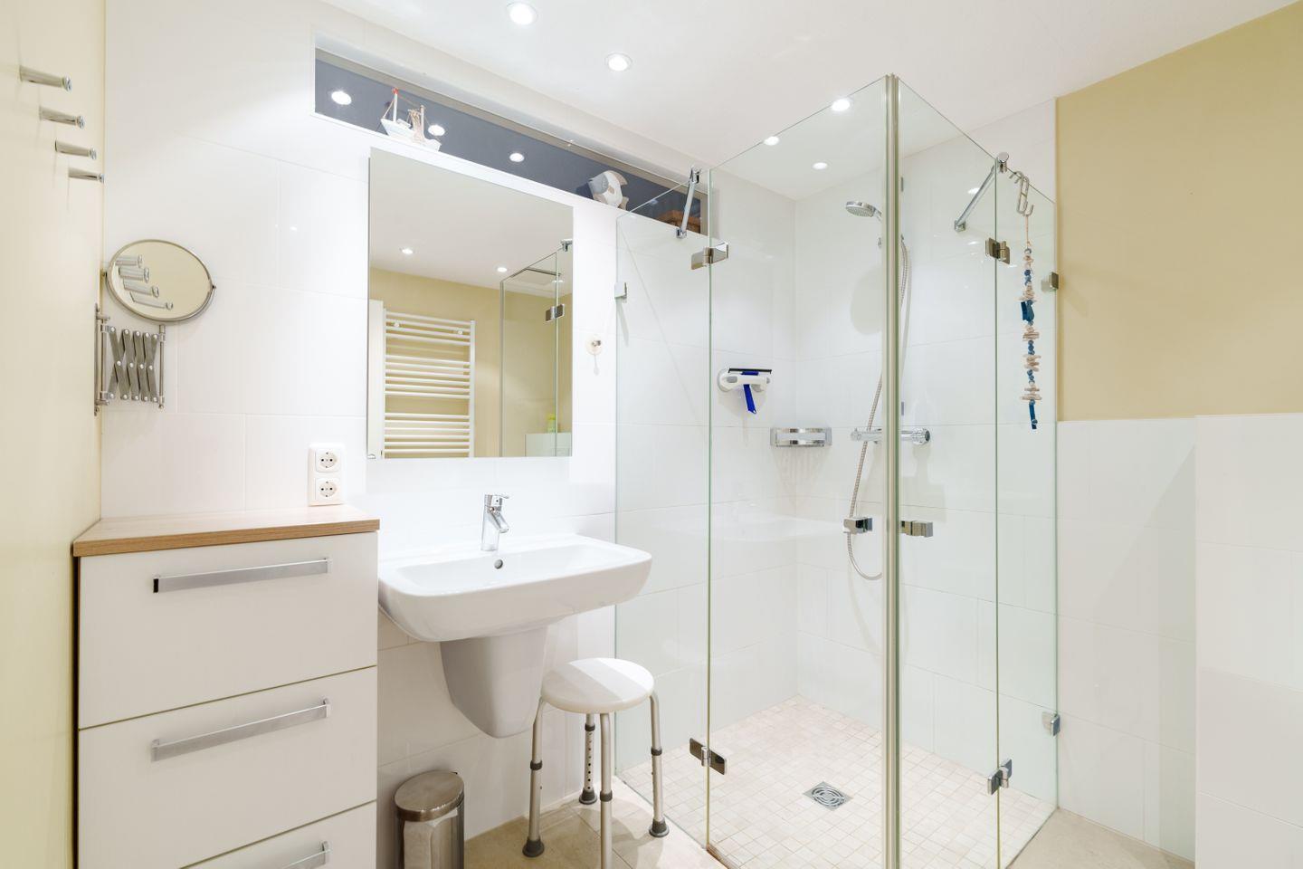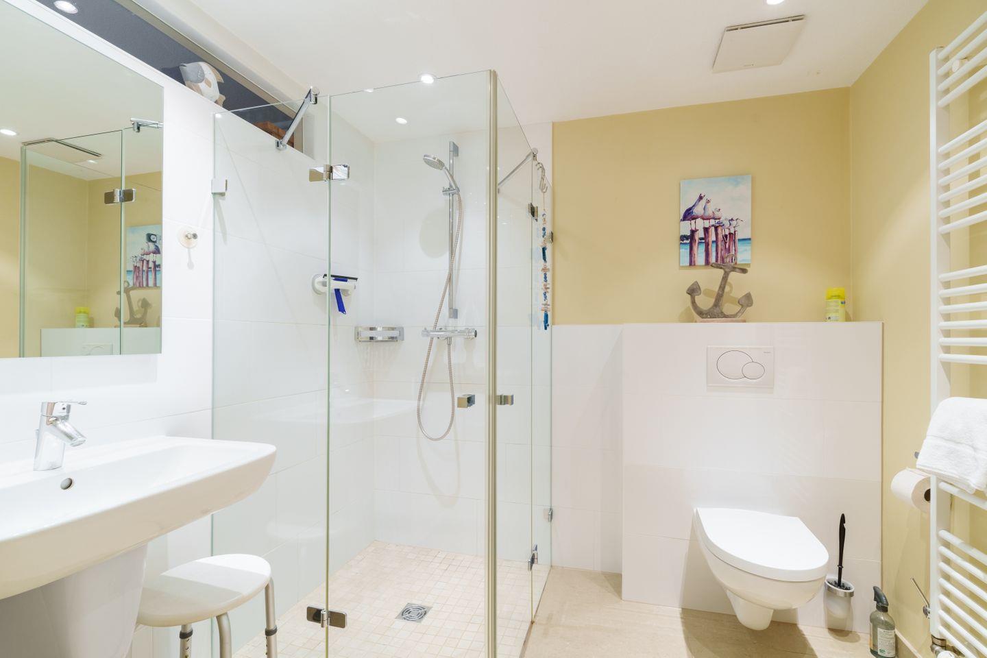 Neben der voll ausgestatteten Küche, gibt es im schönen Badezimmer einen barrierefreien Eingang in die ebenerdige Dusche.