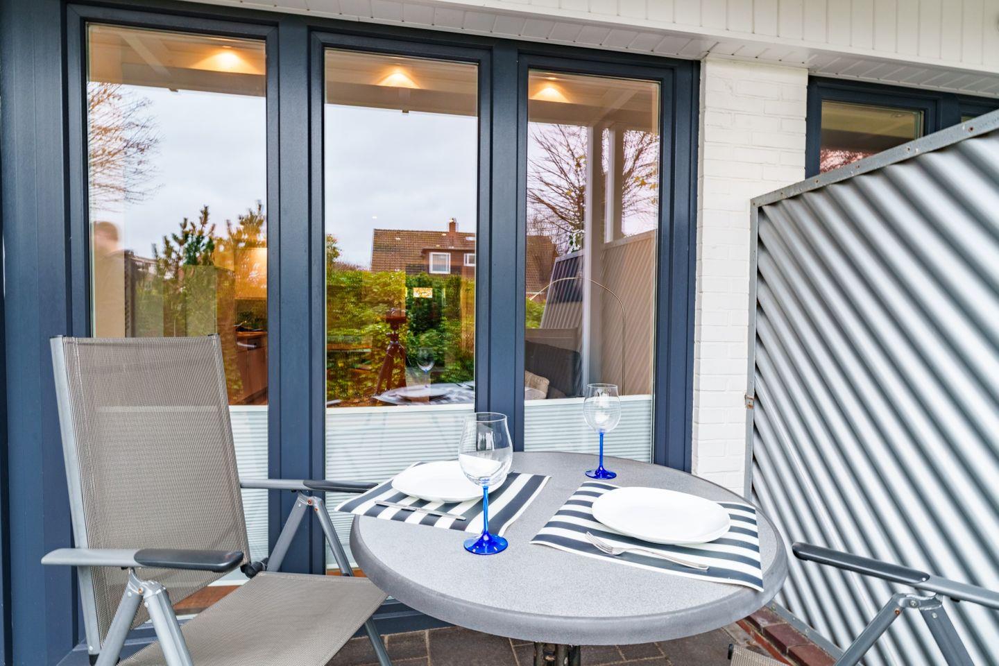 Barrierefreie Ferienwohnung in Büsum mit zwei Terrassen und privatem Parkplatz, ideal für entspannten Urlaub mit Hund.