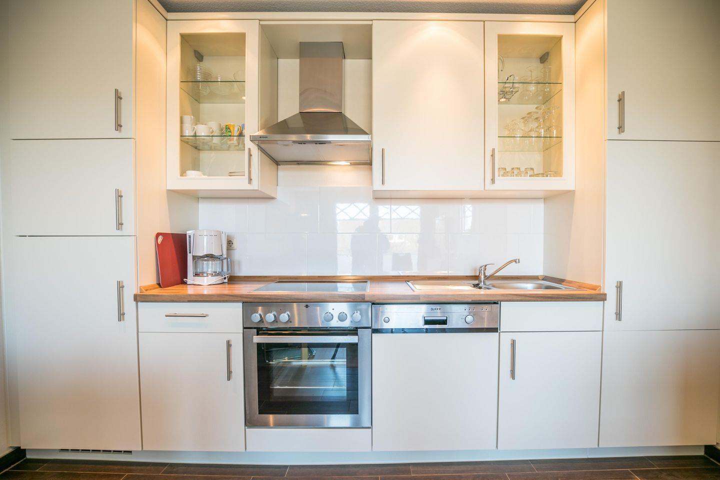 Einbauküche, Ceranfeld, Backofen, Geschirrspüler, Kühlschrank mit Gefrierfach, Kaffeemaschine, Toaster, Eierkocher