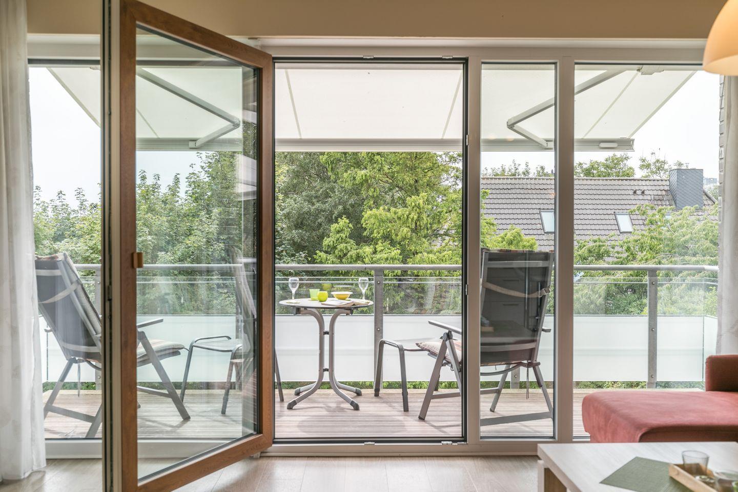 Moderne Ferienwohnung mit Balkon und Hafenblick in Büsum, nahe Strand und Zentrum.