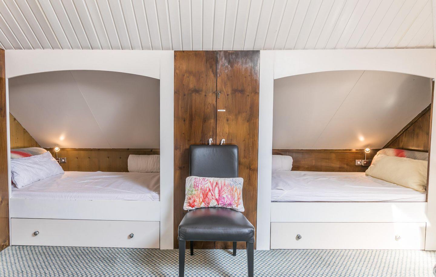 Doppelbett (2.00 x 2.00m) mit verstellbaren Rahmen, 2 Sessel mit Tisch, TV-Bank mit kleinem Flachbild-Fernseher, Stereoanlage, Kinderreisebett, Schränke, Teppichboden, Dachfenster mit elektrischer Öffnung und Verdunkelungsmöglichkeit.