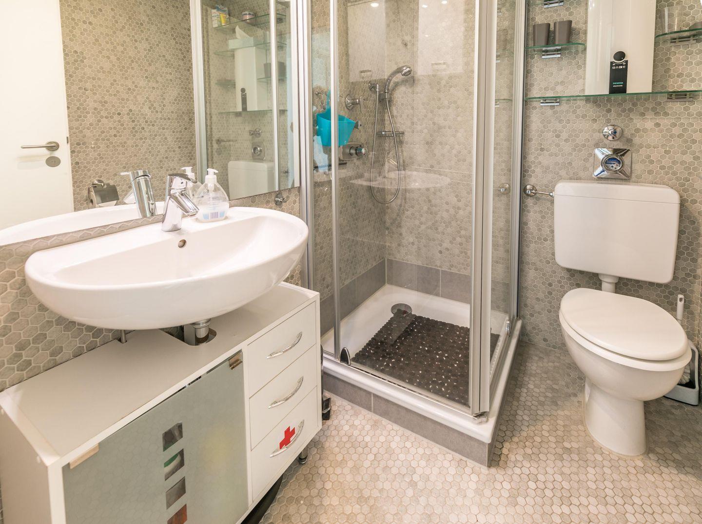 Im unteren Stockwerk befindet sich auch das kleine mit modernen Sanitäranlagen ausgestattete Duschbad und das ansprechende Schlafzimmer.